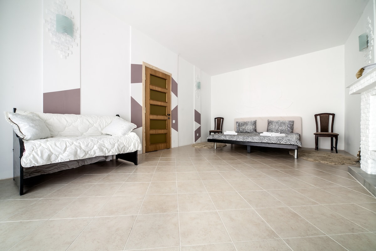Առանձին նոր տուն, որը գտնվում է հանգիստ վայրում, կենտրոնից 2 կմ հեռավորության վրա, Օպերայի շենքն ունի ընդարձակ սենյակներ ՝ լավ վերանորոգմամբ: Այսպիսով, կան բոլոր պայմանները լավ հանգստի համար: Հյուրասեր տանտիրուհի, որը հյուրերի խնդրանքով կպատրաստի նախաճաշ, ճաշ և ընթրիք ։ Իմ տարածքը հարմար է ՝ զույգերի, միայնակ ճանապարհորդների, բիզնես ուղևորների, ընտանիքների (երեխաների հետ), մեծ խմբերի և մորթե ընկերների (կենդանիների) համար ։