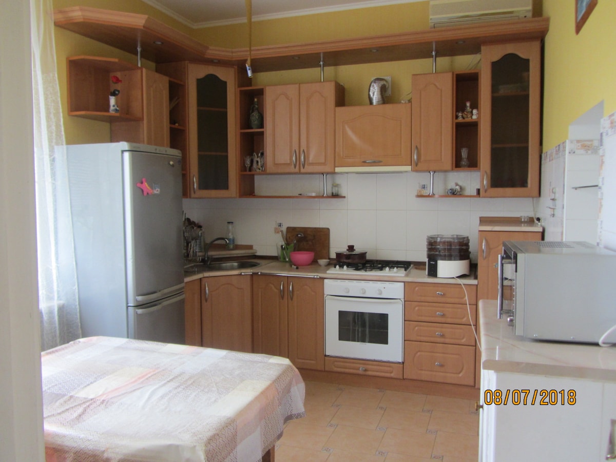 Մենք բնակարան ենք վարձում Օդեսայի հյուրերի համար ։ Հարմար վայր ՝ մեծ շուկայի մոտ, բազմաթիվ խանութներ, տնից մի թաղամաս հեռավորության վրա գտնվող սուպերմարկետ, Եվա, Ավրորա, դեղատներ, հացաբուլկեղենի գործարան: Դեպի ծով 20 րոպե ընդհանուր տրանսպորտով, 20 րոպե մեքենայով ռեստորանով զբոսանավ ծովում: Բնակարանը հագեցած է հարմարություններով ։ Եթե լրացուցիչ որևէ բանի կարիք լինի, մենք կտրամադրենք ։ Վարձակալում ենք 3 օրից: