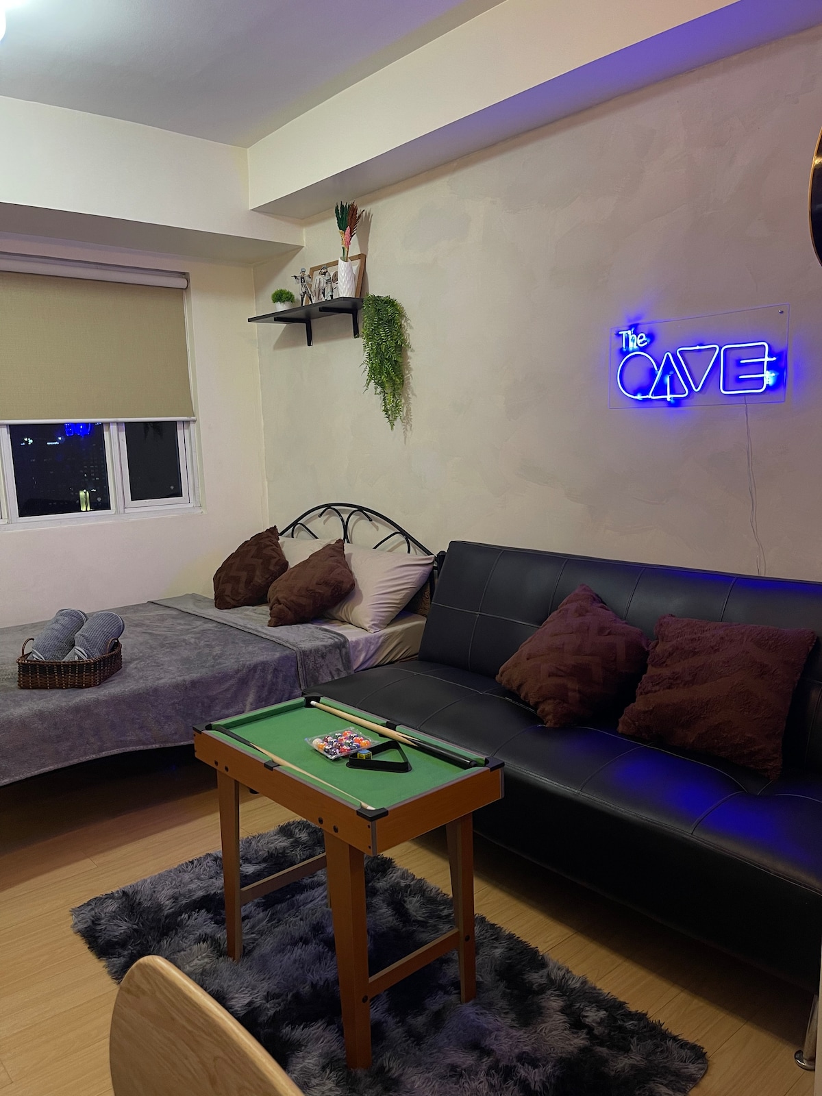 Welcome to CAVE by CLAY Experience a unique space with minimalist industrial design. The unit features exposed elements, clean lines, and a cozy yet sleek atmosphere. With cold AC and a calming layout, it’s perfect for relaxation. Located close to stores, restaurants, and clubs, you’ll have everything within reach. Enjoy the pool table and free games during your stay, adding a touch of fun to your visit. Ideal for those who appreciate both simplicity and style.