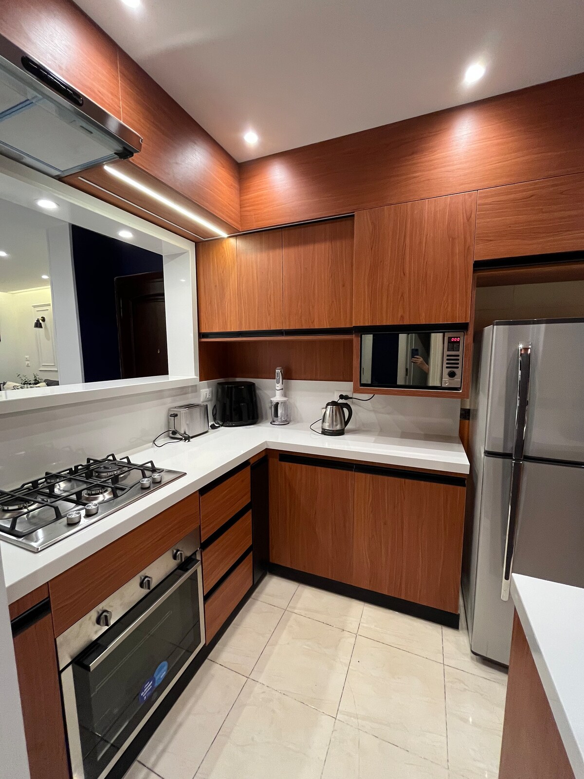 Բարի գալուստ ձեր հանգիստ հանգիստը Դեգլա Մաադիի աղմկոտ սրտում: Այս շքեղ բնակարանը, որը գտնվում է գլխավոր վայրում, հանգիստ ապաստարան է առաջարկում ինչպես ընտանիքների, այնպես էլ ճանապարհորդների համար ։ Քայլեք դեպի ժամանակակից նրբագեղություն ՝ մեր նորաոճ կահավորված տարածքով ՝ պարծենալով երկու հարմարավետ ննջասենյակներով, որոնք զարդարված են փափուկ անկողնային պարագաներով ՝ հանգիստ գիշերային քնի համար ։ Լիովին կահավորված խոհանոցը գրավում է խոհարարական արկածները, իսկ հարմարավետ բնակելի տարածքը հանգստանում է Կահիրեի աշխույժ փողոցներն ուսումնասիրելուց հետո: