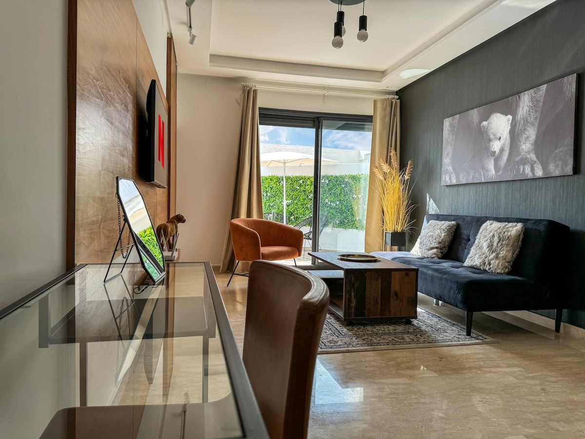 Քանդեք մեր շքեղ ստուդիան, որտեղ հարմարավետությունը հարմարավետ է Կասաբլանկայի ամենացանկալի թաղամասերից մեկում: Ներկայացնում ենք նրբագեղ դիզայն, մասնավոր մարզասրահ և ընդարձակ պատշգամբ ՝ կատարյալ առավոտյան սուրճի կամ երեկոյան հիասքանչ տեսարաններ վայելելու համար ։ Լավագույն ռեստորաններով, խանութներով և տեսարժան վայրերով ՝ ընդամենը մի քանի քայլ հեռավորության վրա, դուք կունենաք ամեն ինչ ձեր շեմին: Անկախ այն բանից ՝ բիզնես եք այցելում, թե հանգստի նպատակով, հանգստանալու և լիցքաթափվելու իդեալական հանգիստ է ։