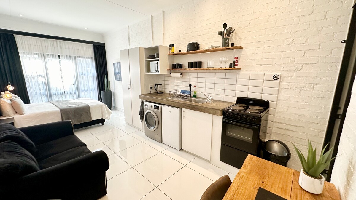 Վայելեք յուրահատուկ ոճով ձևավորված բնակարան Մաբոնենգում։ Այս խելամտորեն նախագծված տարածքը առաջարկում է բարձրակարգ բնակարան՝ պատկերասրահների, ռեստորանների և Յոհաննեսբուրգի գիշերային կյանքի մոտակայքում։ Վայելեք մեծ չափի մահճակալ, արագ Wi-Fi, 55 դյույմ անկյունագծով 4K Smart TV՝ Netflix-ով, լվացքի մեքենա, հատուկ կահույք, երկու մետր բարձրությամբ զարմանահրաշ հայելի, էլեգանտ մարմարե հատակներ, լիովին կահավորված խոհանոց, արևոտ պատշգամբ՝ դեպի պարտեզ և փոքր լողավազան բացվող տեսարանով, ինչպես նաև՝ առանձին ցնցուղարան։ Շուրջօրյա անվտանգության շնորհիվ ձեր այցն անվտանգ, մասնավոր և անհոգ է։