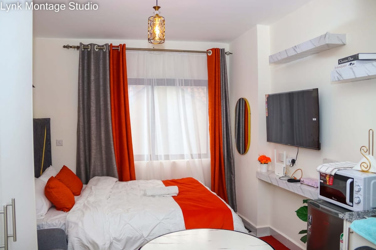 A cozy and serene studio located at the heart of syokimau. 15minutes drive to Jomo Kenyatta international airport and 10 minutes from the SGR train station. Easy accesibility to the Expressway ( Toll charges apply). It's perfect for business and holiday travellers .students, couples and anyone seeking a peaceful & convenience stay. 20 minutes away from Nairobi city. Nearby Amenities: Gateway Mall - With Banks, hospitals , pharmacies and supermarkets.