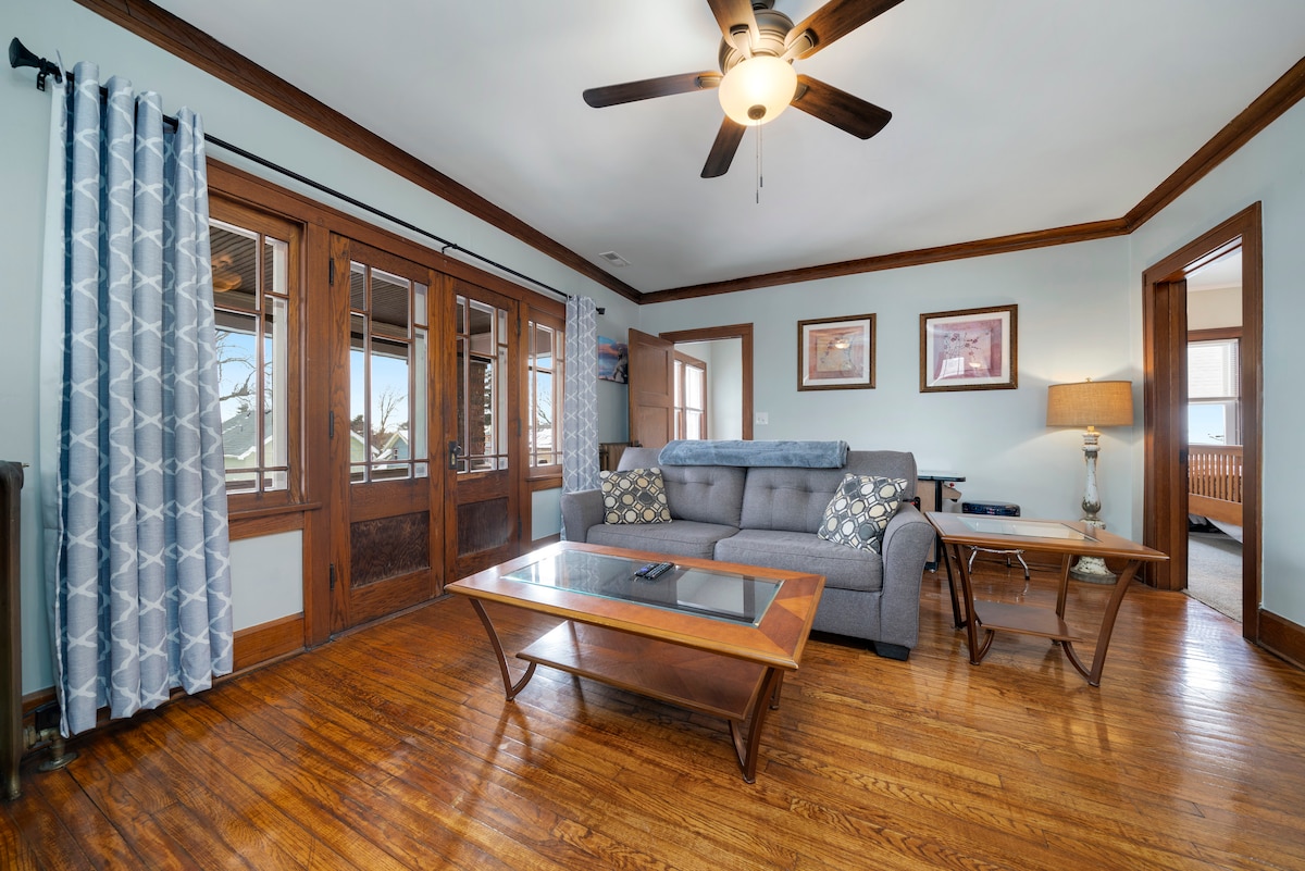 Ժամանակակից հարմարություններով պատմական տուն գետի ափին և Ռոքֆորդի կենտրոնում: 3 ննջասենյակ, 2,5 լոգասենյակ, լողավազանի սեղանի գամերոոմ, համակարգչային աշխատանքային տարածք, ամբողջական խոհանոց: Զբոսնեք մեր լողափնյա նավարկությամբ հիասքանչ Rock River Bike Path - ի երկայնքով դեպի լավագույն տեսարժան վայրերը, այդ թվում ՝ Անդերսոնի ճապոնական այգին, Discovery Center Museum - ը, Burpee Museum - ը, Sinnissippi Riverfront Park - ը ՝ բոլորը 5 րոպեի ընթացքում: Օրվա վերջում հանգստացեք և զվարճացեք ձեր ընտանիքին խաղասենյակում ՝ լողավազանի սեղանով և մեծ էկրանով հեռուստացույցով: Ամրագրեք հիմա ՝ ձեր հաջորդ արձակուրդը կողպելու համար: