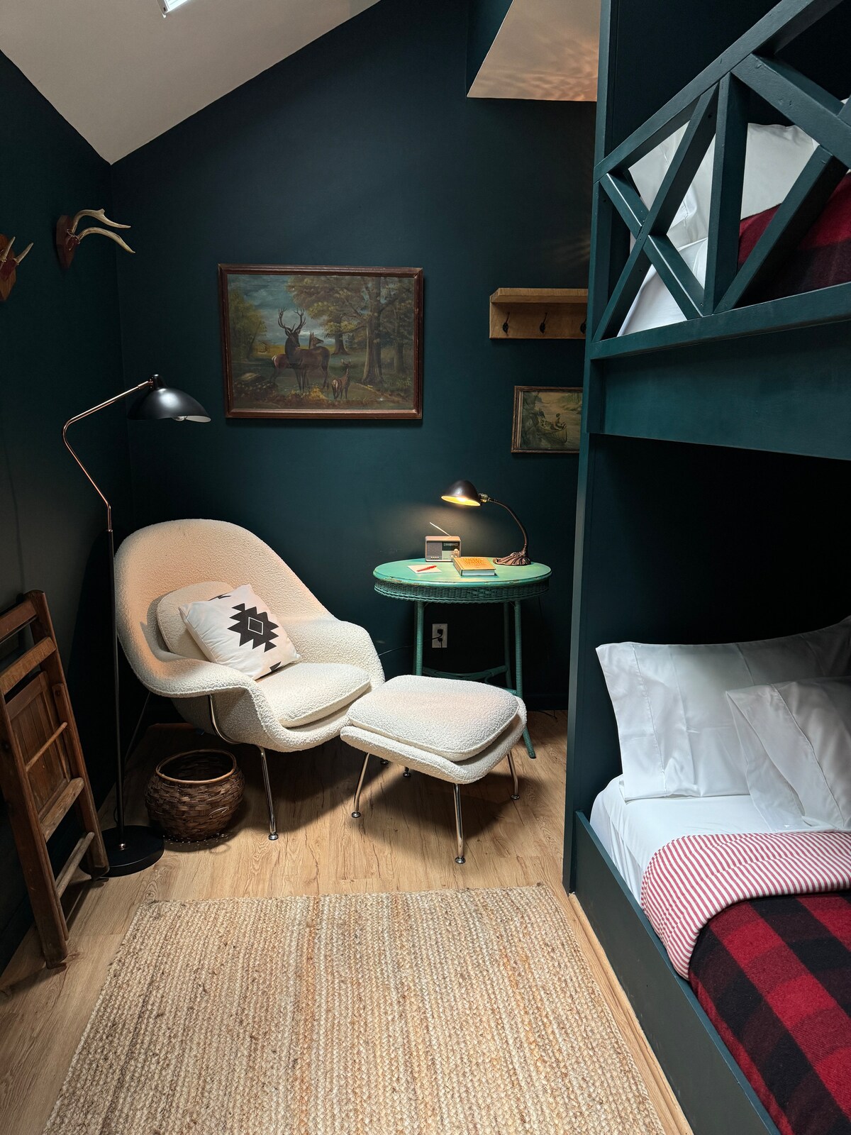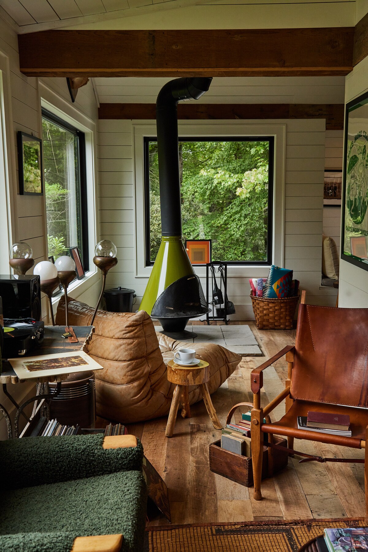 The Double Grand is our 280sf Double Queen Suite which can host 4 guests. It boasts luxury Queen mattresses, Italina linens, gas fireplace and cozy seating area, large minifridge, coffee maker, minibar, bluetooth speaker, record player with curated vinyl, luxury bathroom with robes, luxe toiletries and a walk in shower. Filled with vintage textiles, Pendleton blankets and vibey art- it is the perfect basecamp for your next adventure with friends or family!