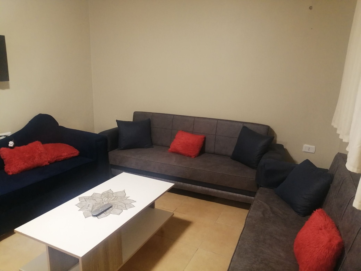 Այս ժամանակակից բնակարանը, որը գտնվում է քաղաքի կենտրոնից ընդամենը մի քանի րոպե հեռավորության վրա՝ խաղաղ և անվտանգ թաղամասում, կատարյալ է զույգերի, ընտանիքների կամ գործարար ճանապարհորդների համար, որոնք փնտրում են հարմարավետություն և մեկուսիություն։ Տարածքը ներառում է լուսավոր և ընդարձակ հյուրասենյակ՝ էլեգանտ մարմարե հատակով, հարմարավետ կանաչ թավշյա բազմոցներով և ժամանակակից լուսավորությամբ, որը ստեղծում է ջերմ և հանգստացնող միջավայր։ Մեծ պատուհանները, որոնք ունեն անձնական տարածքի ապահովման համար նախատեսված շերտավարագույրներ, ցերեկը ներս թողնում են բնական լույս, իսկ գիշերը՝ ստեղծում մտերմիկ միջավայր։
