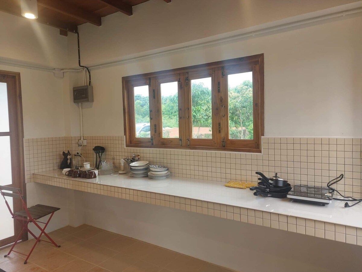 Վերադարձեք և հանգստացեք այս հանգիստ, նորաոճ տարածքում ։ Մեր տունը գտնվում է Mueang ngai sub թաղամասում, Chiangdao թաղամասում: -1 ննջասենյակ ՝ ստանդարտ անկողնային պարագաներով -2 լոգասենյակ, լոգարան ՝ լեռան տեսարանով -1 խոհանոց ՝ սարքավորումներով -1 Պատիո խորովածի մանղալով - Անվճար Wi - Fi - նախաճաշ ՝ թեյ, սուրճ, հաց, ձու և սեզոնային միրգ - Բազմաֆունկցիոնալ բակ ՝ լեռան տեսարանով - Մեր տունը գտնվում է «Սրճարան »- ի մոտ ՝ իմ օրը, և մոտակայքում կա հարմարավետ խանութ ։