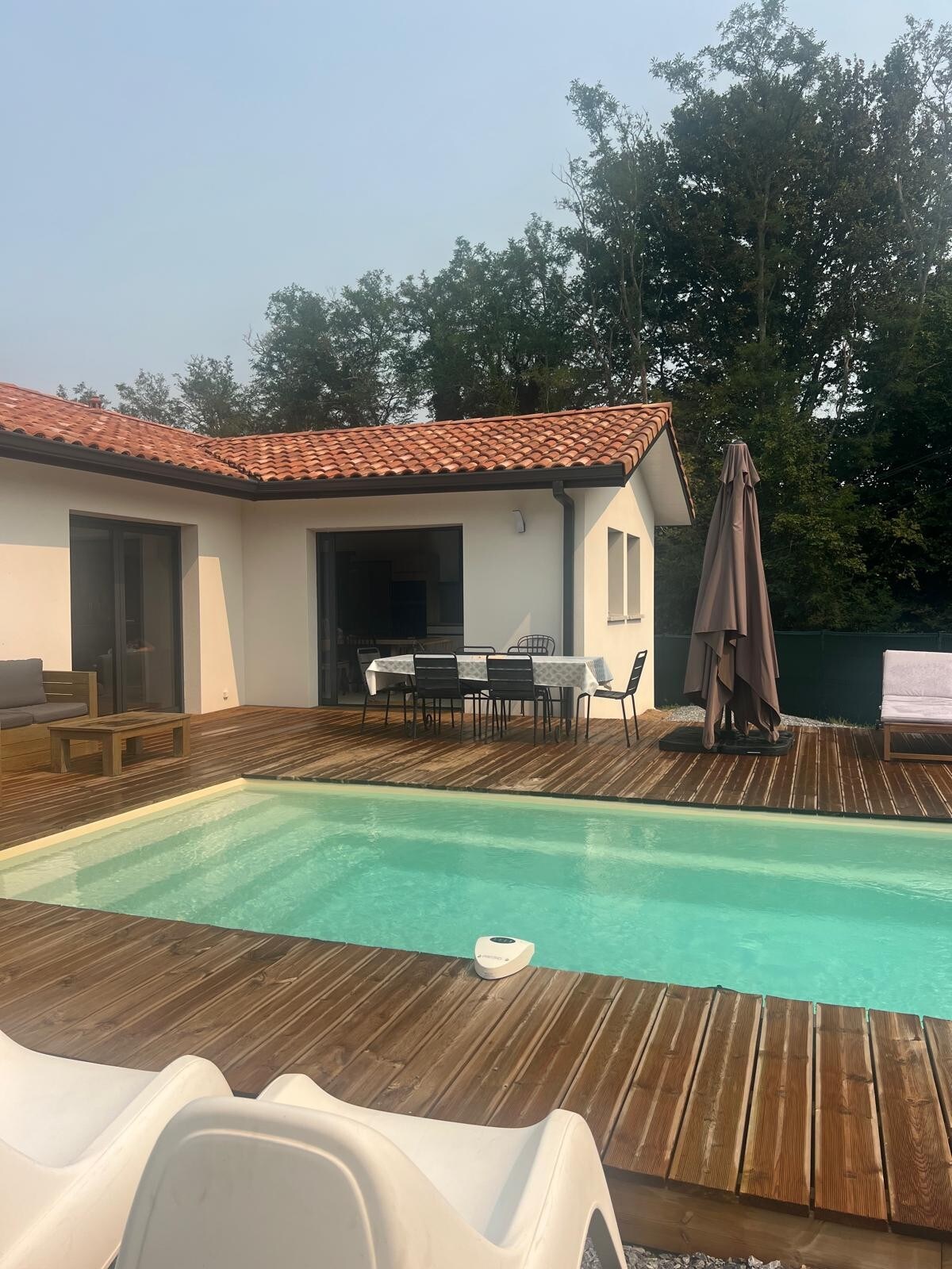 Նոր տուն ՝ շրջապատված անտառով ՝ Լանդսի ափի հեծանվային արահետի և լողափերի կողքին Այն բաղկացած է ամերիկյան խոհանոցով հյուրասենյակից, 3 ննջասենյակից, այդ թվում ՝ 1 գլխավոր առանձնաբաժնից ՝ լոգասենյակով և զուգարանակոնքով, մեկ այլ լոգասենյակ և անկախ զուգարան ։ Ինտերնետ մանրաթել 🛜 Դրսում ՝ 4 - ից 8,5 մ բարձրությամբ ամբողջական հարավային լողավազան, որը ջեռուցվում է ապրիլից մինչև նոյեմբերի 11 - ը ՝ կանաչապատ այգով և 110 մ2 փայտե կտուրով ։ Մոլիեց և մաայի լողափն ու գոլֆը ՝ 10 րոպե հեռավորության վրա Vieux Boucau 15mn Hossegor 28mn . Բիարից 50մն