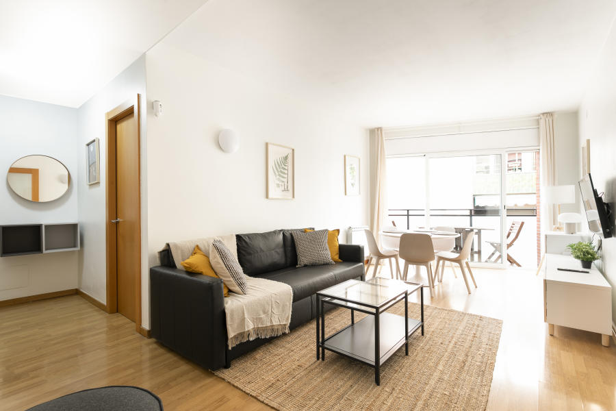 Charming apartment with bright natural light, private balcony with views on Hotel Brummell pool and urban garden. Located in the authentic Poble Sec neighbourhood next to Montjuïc. Freshly reformed, quiet, and authentic. The location of the apartment is ideal since it is in one of the quietest neighbourhoods of the city, near the main centres of interest of Barcelona and is well situated for public transport. - 50 m² - 4 Adults - 2 Bedrooms - 1 Extra Bed - Fully equipped Kitchen