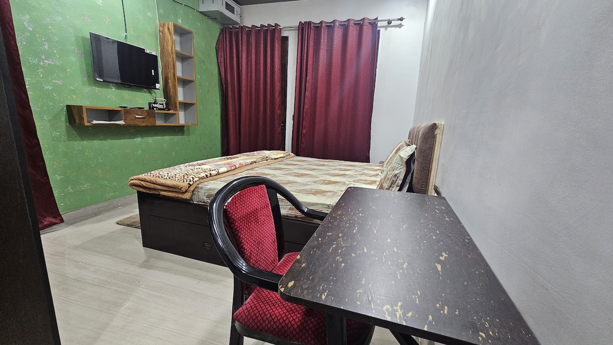 Stay at Bhakti Vanam, just 1.5 kms from the sacred Prem Mandir in Vrindavan. Enjoy a spacious studio with air conditioning, high-speed Wi-Fi, a private entrance, and a cozy balcony. Perfect for two guests, with an extra bed available if needed. Convenient to temples and public transport, and scooty rentals can be arranged. Full access to a well-equipped kitchen and clean washroom. Ideal for families or solo travelers seeking comfort and peace in a spiritual place.