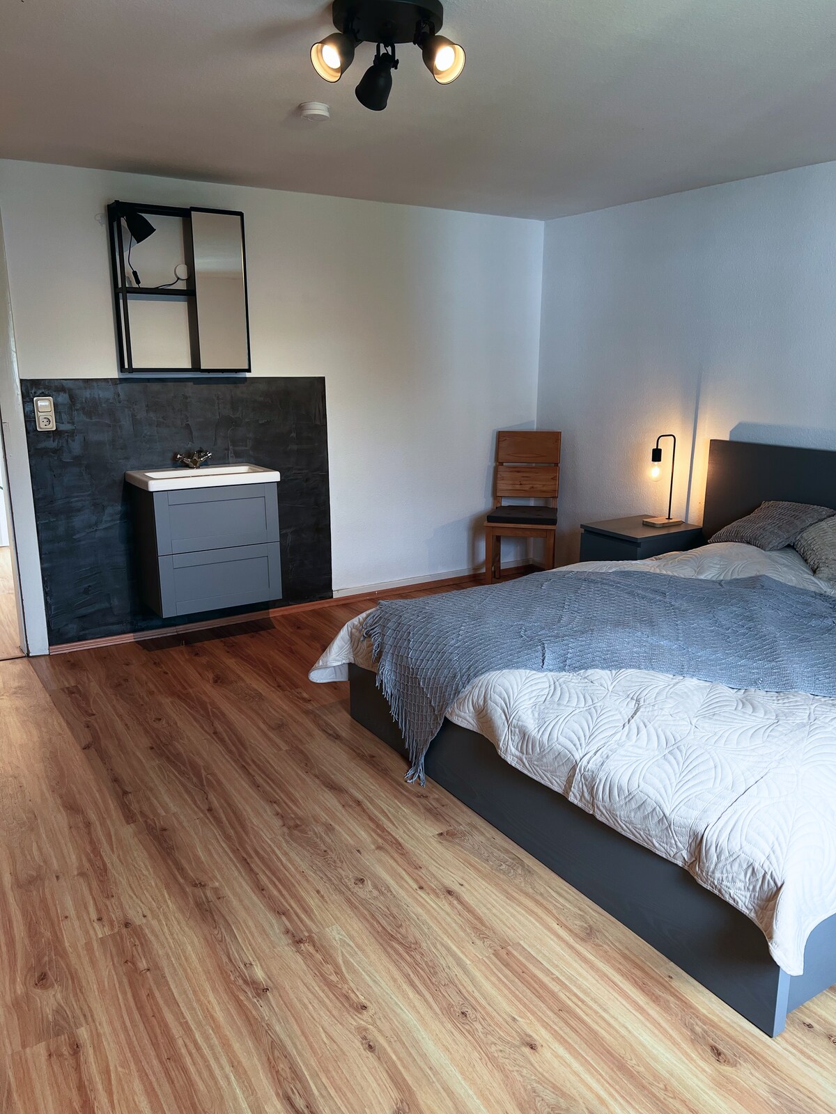 Մեր հարմարավետ կահավորված ստուդիական բնակարանում ՝ գերժամանակակից երկրի ոճով, դուք կարող եք հանգստանալ և առաջվա պես արագ լինել գործի կեսին: Բնակարանը ձեր տրամադրության տակ է, ունի սեփական մուտք և կայանատեղի, բայց առանց խոչընդոտների հասանելի չէ ։ Դրա համար դուք ունեք ձեր սեփական կտուրը ՝ այգու տեսարանով: Այստեղ կարող եք հանգստանալ և վայելել ձեր հանգիստը ։