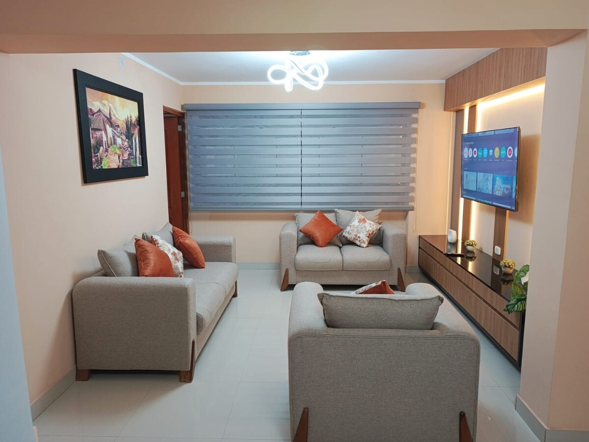 Բացահայտեք խաղաղությունն ու նրբագեղությունը մեր նոր մինի բնակարանում, որը գտնվում է չորրորդ հարկում։ Վայելեք բացառիկ հարմարություններ ՝ տաք/սառը ջրով, գերարագ ինտերնետով և մալուխով յուրաքանչյուր անկյունում: Հանգստացեք հյուրասենյակի և գլխավոր ննջասենյակի հեռուստացույցներով ։ Գտնվում է գլխավոր պողոտայում ՝ Հուարազի կենտրոնից մեքենայով ընդամենը 10 րոպե հեռավորության վրա ։ Ձեր անվտանգությունը մեր առաջնահերթությունն է ՝ բացօթյա հսկողության տեսախցիկներով ։ Ձեր հանգստության օազիսը սպասում է ձեզ ։