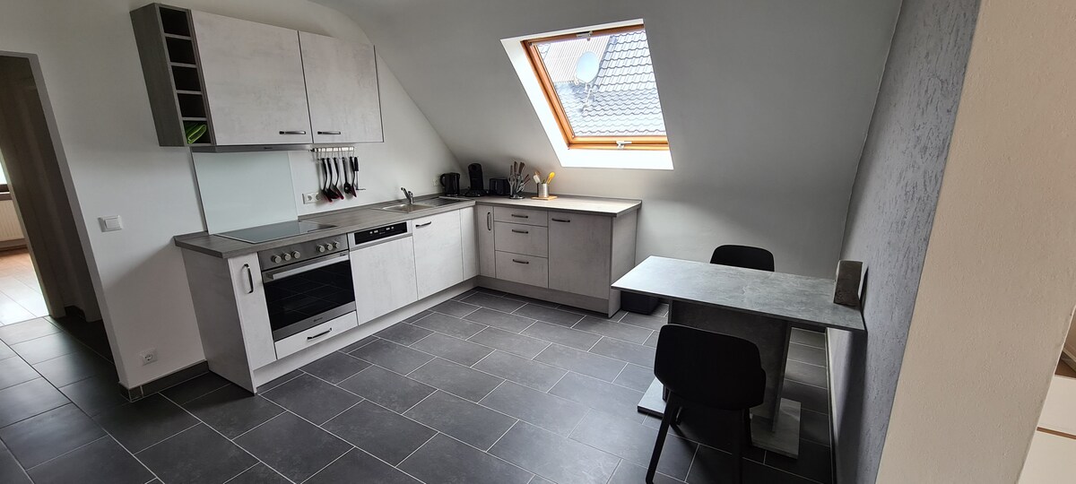 Kick back and relax in this calm, stylish space. There is a lot of room for up to 4 people, areas to relax, cook or work. Feel free to use the PlayStation or the electric sit/stand desk for home office activities. The loft is not far from Aschaffenburg, Frankfurt, Wertheim Village or Wuerzburg. All can be reached in max 50 minutes or less. Also, Spessart forest starts right behind the loft, a lot of walking and biking opportunities can be accessed from Waldaschaff and from the loft.