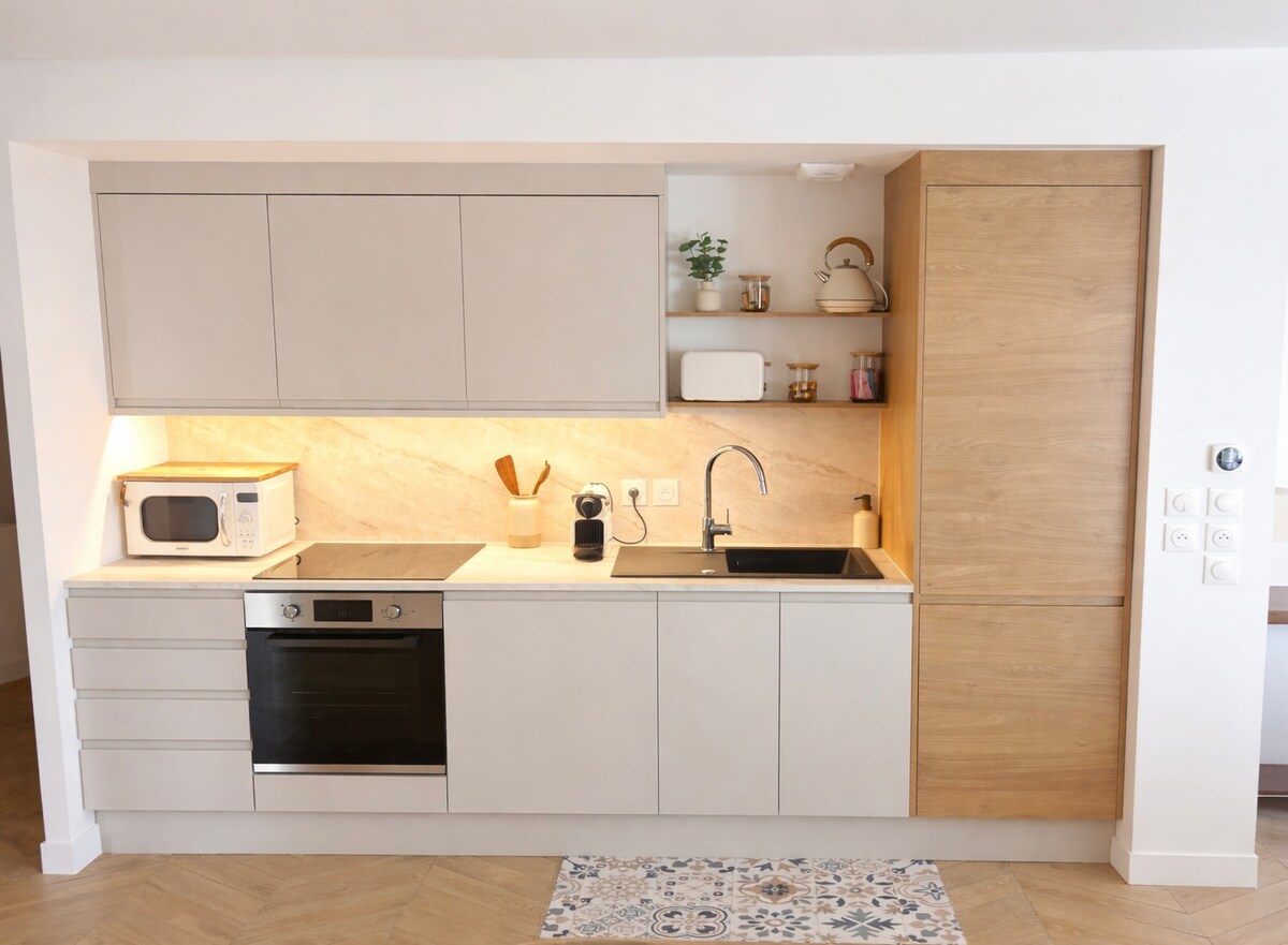 🏰 Fully renovated T1 apartment for 2 guests. Located in a historic building, it blends old-world charm with modern comfort. 🎯 In the heart of Orléans' historic center - Place du Martroi 🚊 8 min walk from the train station, 200m from the tram, and 100m from public parking. 🏰 Steps from the Cathedral, Place du Martroi, lively terraces, and the Loire River banks. 🏛️ Only 1h by train / 1h30 by car from Paris, and 45 min from the stunning Loire Valley castles.