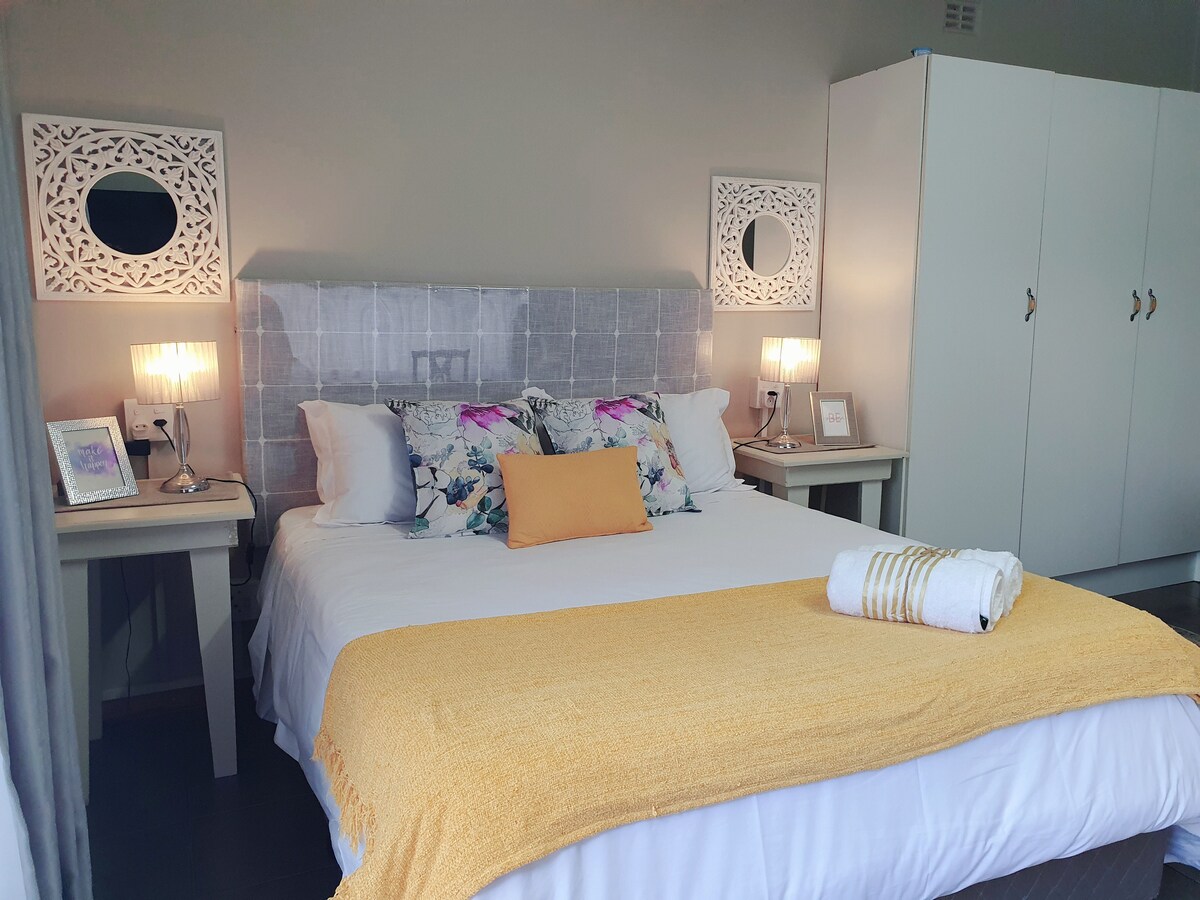 ՈՉ LOADSHEDDING!!! @30 Zebra - ն բաց հատակագիծ է, ինքնուրույն սննդի կետ, որը կարող է հյուրընկալել մինչև 2 հյուր ՝ 1 երկտեղանի մահճակալ ։ Այս հարկաբաժինը հագեցած է սառնարանով, փոքր ջեռոցով, միկրոալիքային վառարանով և խոհանոցային պարագաներով, որոնք կերակուրներ պատրաստելը դարձնում են զեփյուռ, կա նաև անվճար Wi - Fi: Հարկաբաժինն ուղեկցվում է շքեղ լոգասենյակով, որն ունի ընդարձակ ցնցուղարան, զուգարան և ավազան ։ Մենք գտնվում ենք հանգիստ ծայրամասային տարածքում, Savannah Mall, ռեստորաններ եւ գնումներ են քայլում հեռավորության վրա: