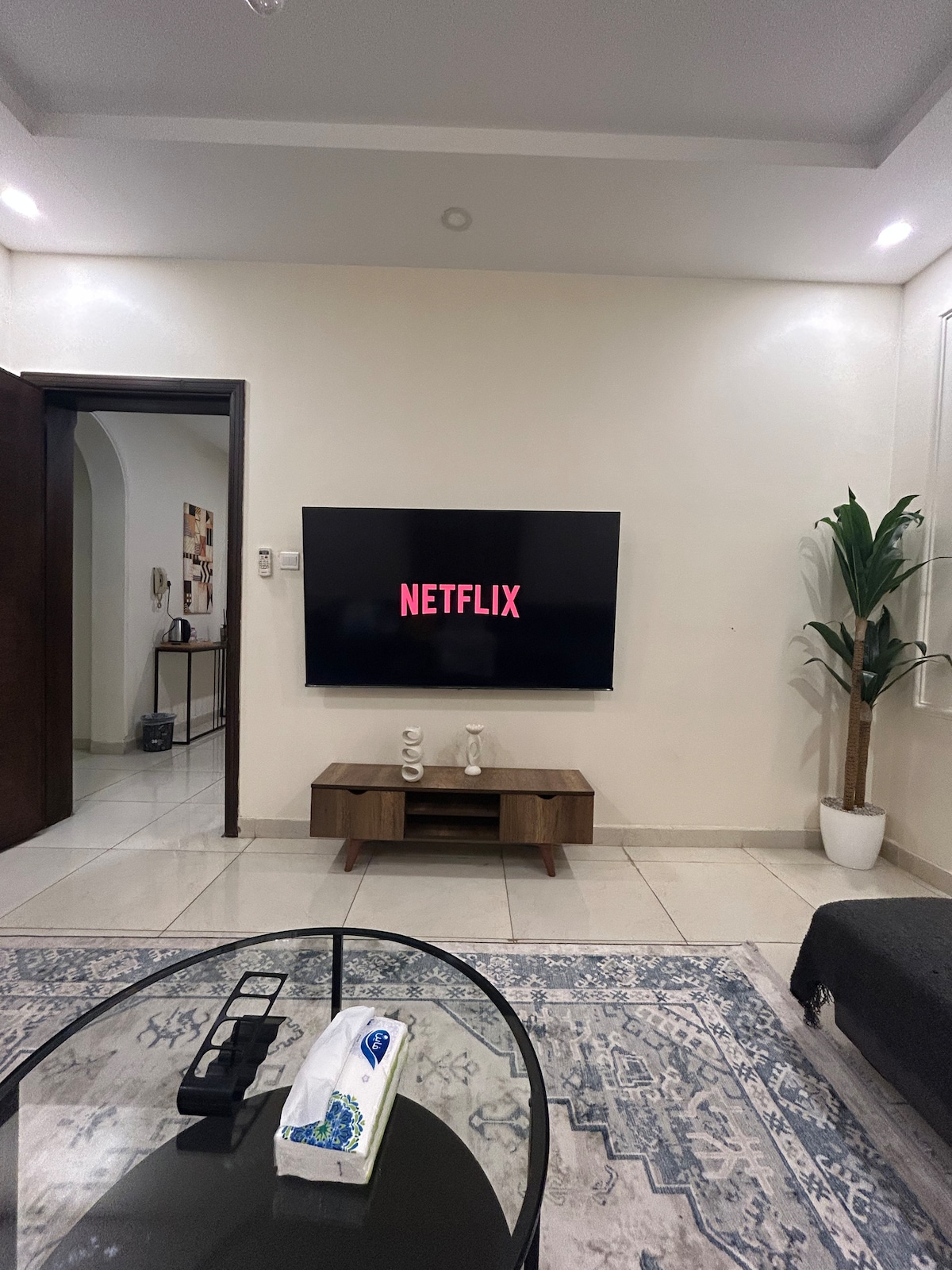 Ամրագրեք ձեր այցը Ջիդդայի կենտրոնական Rawdah թաղամասում ՝ հարմարավետության և հարմարավետության կատարյալ խառնուրդի համար ։ Այս 1 ննջասենյակով բնակարանի առանձնահատկությունները ՝ • 65 դյույմանոց 4K սմարթ հեռուստացույցը նախապես տեղադրված է հոսքային հեռարձակման բոլոր սիրված հավելվածներով ։ • Գերարագ Wi - Fi ։ • Queen մահճակալ ՝ սև վարագույրներով և ամուր/փափուկ բարձերով ։ • Խոհանոցիկ, որը նախատեսված է թեթև խոհարարության համար ։ • Սուրճի/թեյի կայան ։ • Թարմ սրբիչներ, շամպուն, կոնդիցիոներ և ցնցուղի գել ։ • Խելացի կողպեք ՝ ինքնուրույն ժամանման համար ։ Վայելեք անխափան հանգիստն այս գլխավոր կենտրոնական վայրում: