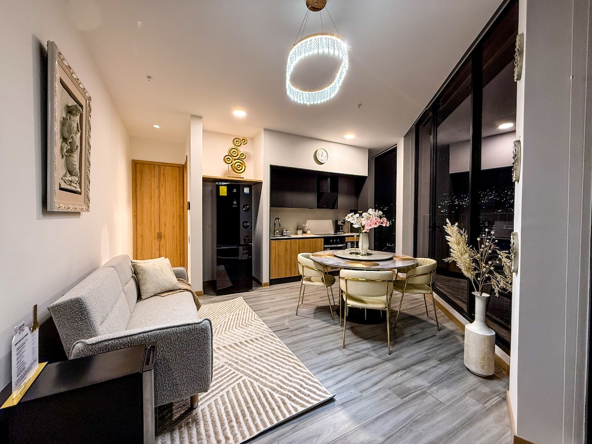 Modern, brand-new studio on the 14th floor with direct views of La Carolina Park. Studio amenities: • High-speed fiber optic WiFi • 55” QLED Smart TV • Ultra-comfortable bed • Fully equipped kitchen • Modern bathroom • Smart lock • 24/7 security Social areas (17th floor): • Gym • Coworking area with WiFi • Game room • BBQ area • Jacuzzi (available only for stays longer than two nights) Prime location, just 15 minutes from the Quito Metro, malls, and restaurants.