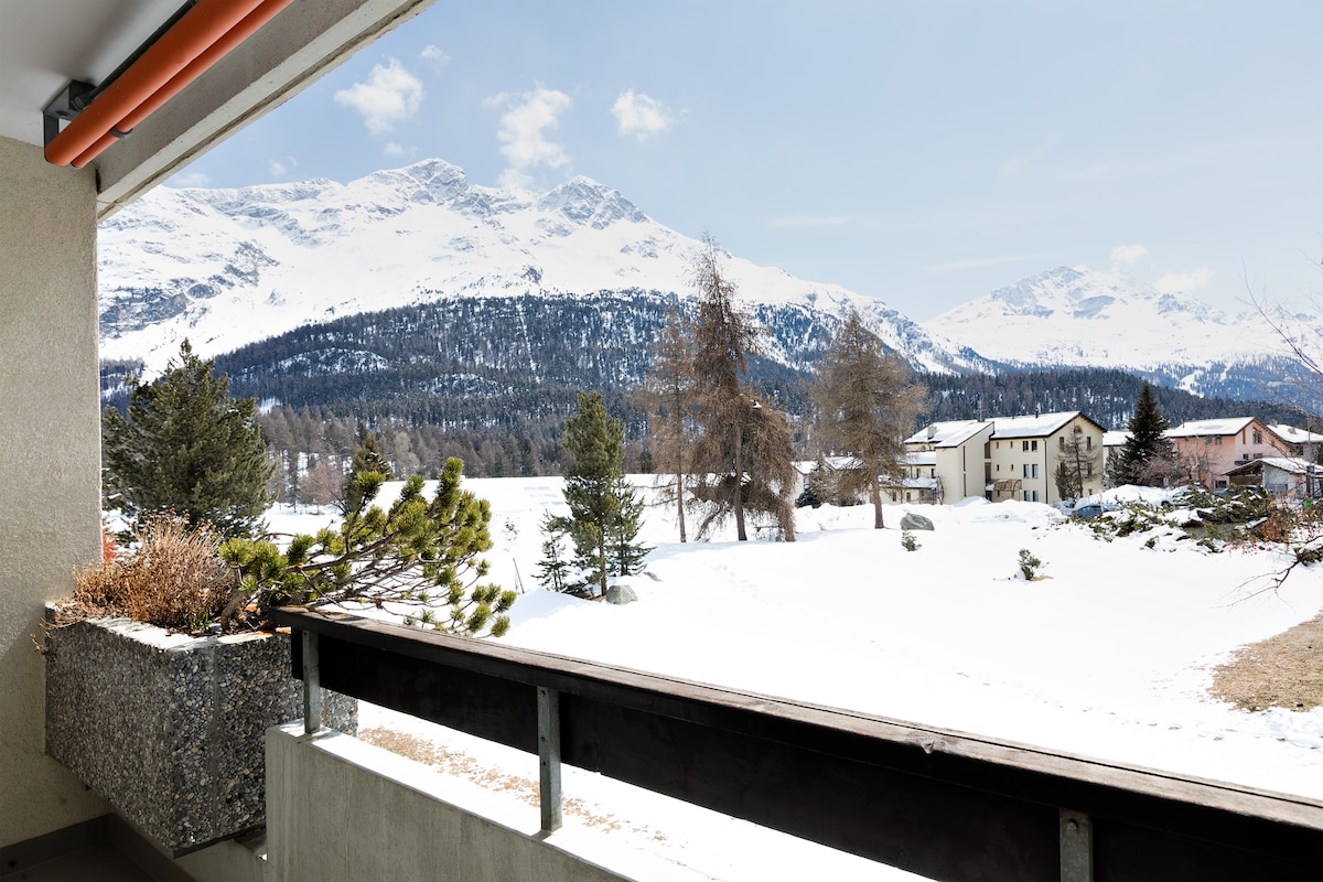 Das Studio befindet sich im 2. Stock der Chesa Rosatsch. Man kann hier einen spektakulären Blick auf die Wälder und die Berge ringsum geniessen, sowohl aus dem Studio heraus, als auch vom Balkon aus, wo Sie Ihre unvergesslichen Aperitif-Zeiten mit Ihren Liebsten verbringen können.