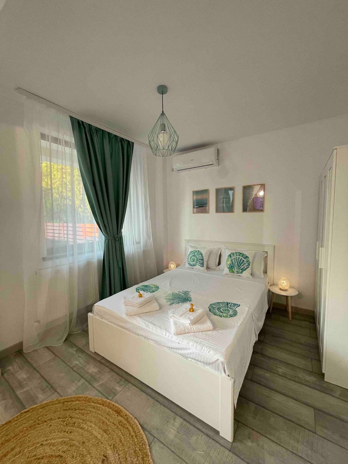 Լուսավոր և ընդարձակ 3 սենյականոց բնակարան 3 Պապուչի լողափից (Zoom լողափ) ընդամենը 5 րոպե հեռավորության վրա ։ Իդեալական է ընտանիքների կամ խմբերի համար ՝ լիովին կահավորված, ունի 2 լոգասենյակ, օդորակիչ, խոհանոց և առանձին կայանատեղի ։ Իդեալական է գլխավոր բուլվարում, որտեղից հեշտությամբ կարելի է օգտվել ՝ • Սուպերմարկետներ (Mega Image – 3 -5 րոպե ոտքով) • Ռեստորաններ, սրճարաններ և լողափնյա բարեր • մոտակայքում գտնվող դեղատունը և բժշկական կենտրոնը • Հասարակական տրանսպորտ և արագ մուտք դեպի քաղաքի կենտրոն