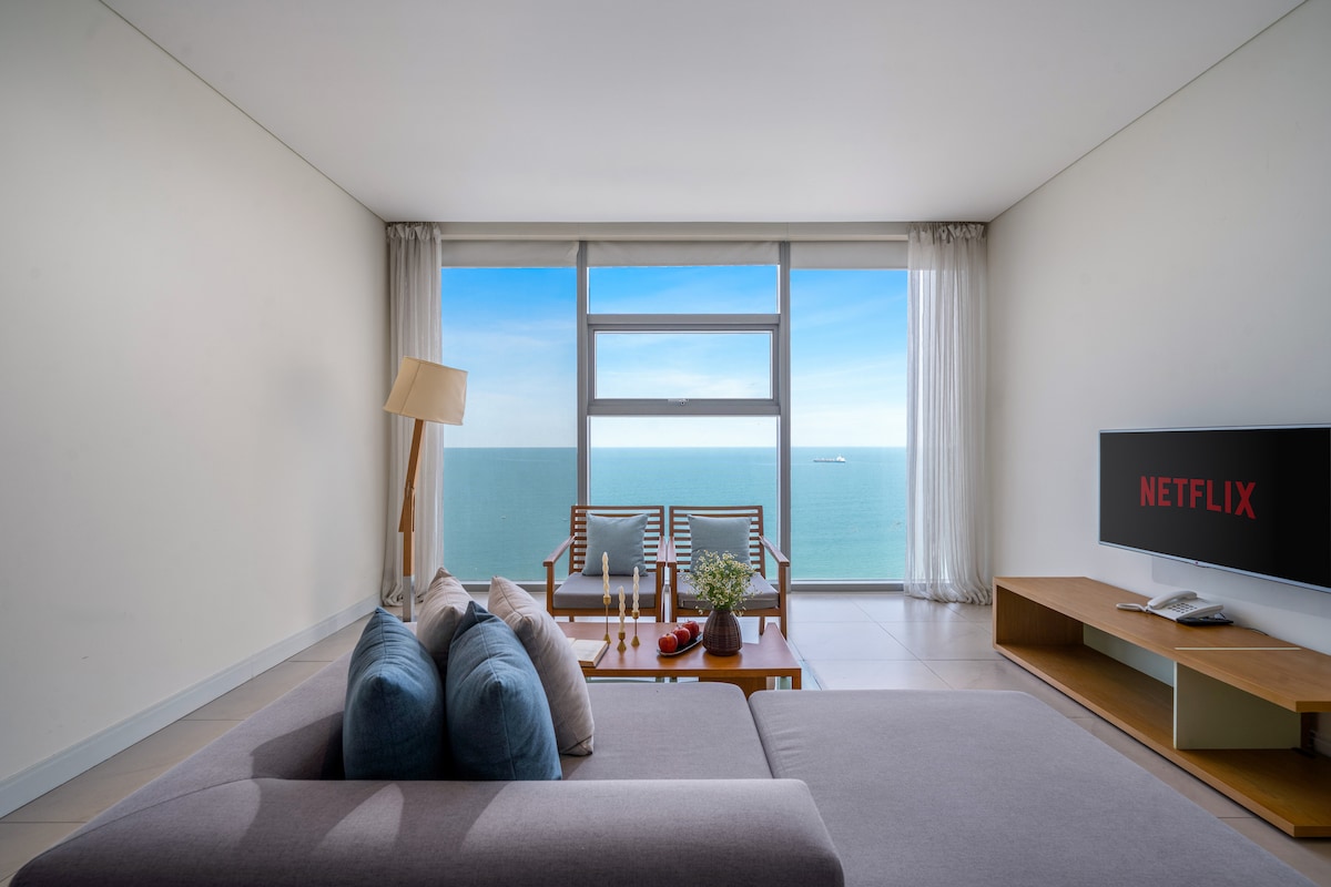 Indulge in panoramic coastal beauty from this rare high-floor corner suite at Fusion Suites Da Nang — where sweeping sea views on two sides meet refined interiors and elevated 4-star comfort. – Just 1 minute to the pristine sands of My Khe Beach – Corner position framing dual-aspect ocean panoramas – Stylish layout designed for both relaxation and inspiration – Full kitchen and premium amenities for a seamless stay POOL USE UPON REQUEST – PLEASE MESSAGE US.