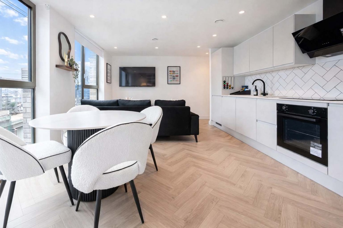 ✨ Նորաոճ 2 ննջասենյակով, 2 լոգասենյակով բնակարան Կենտրոնական Մանչեսթերում | Քուն 6 | Արագ մանրաթելային Wi - Fi Բարի գալուստ ձեր ժամանակակից քաղաքային հանգիստը Մանչեսթերի սրտում ՝ գեղեցիկ դիզայնով երկսենյականոց, երկսենյականոց բնակարան, որն առաջարկում է տարածք, ոճ և հարմարավետություն մինչև 6 հյուրի համար ։ Անկախ այն բանից ՝ աշխատանքային, հանգստի կամ ընկերների կամ ընտանիքի հետ քաղաքային հանգստի եք այցելում, այս բնակարանն ունի այն ամենը, ինչ անհրաժեշտ է հարմարավետ և կապակցված այցի համար ։ 🛏️ Հարմարավետորեն քնում է 6 հոգով Երկու ընդարձակ երկտեղանի ննջասենյակ Երկու ռեժիմ