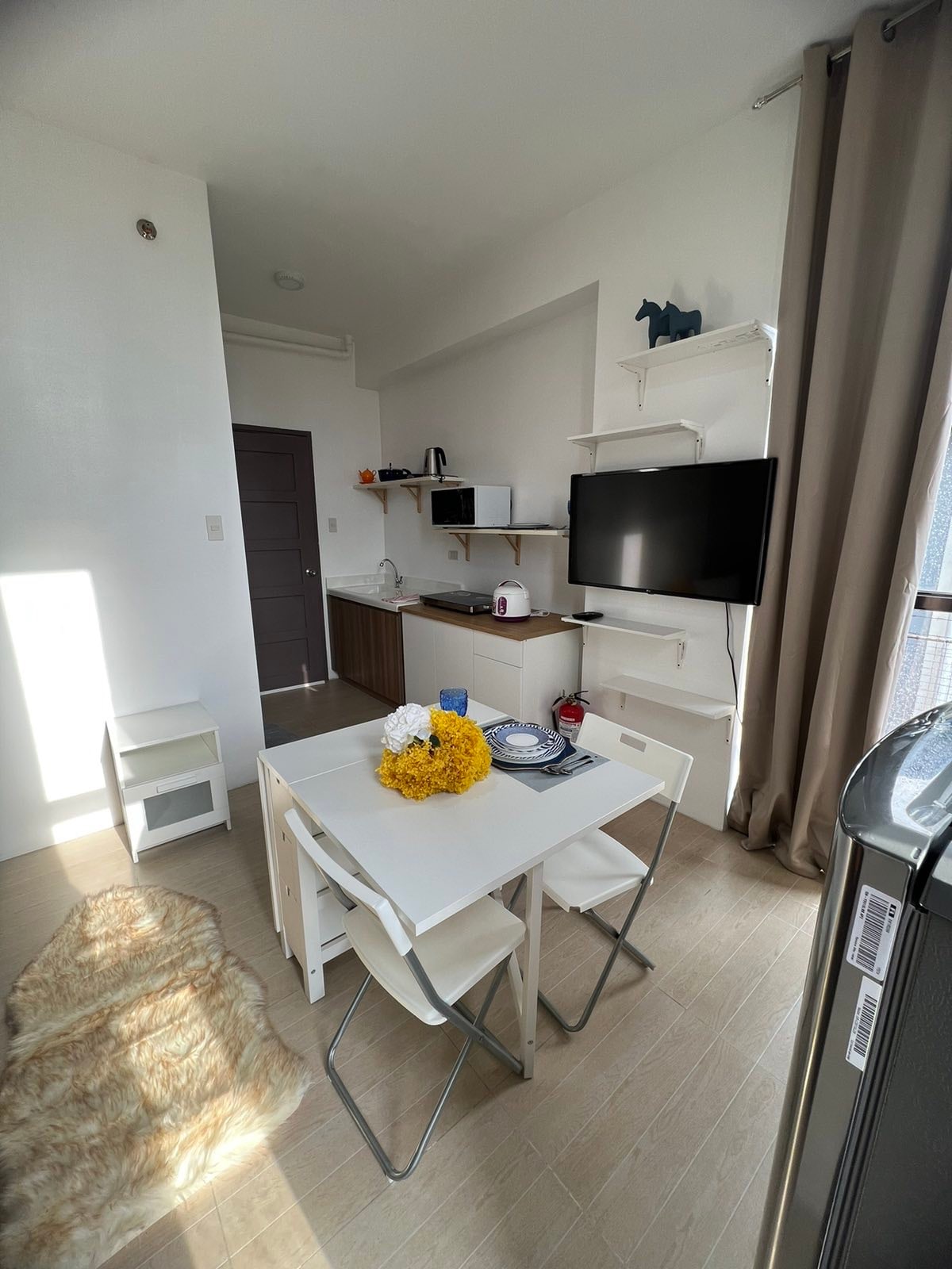 Welcome to your home away from home by StaywithKim! Perfect for solo travelers or couples! Enjoy a comfy bed with extra sofa bed, Converg Fiber Wi-Fi, smart TV with Netflix, balcony and a kitchenette. The space is bright, modern, new and has everything you need, designed for relaxation and convenience. Located in a safe, central area close to cafes, malls, and 20min drive to airport. What makes it special? It’s a cozy urban retreat that feels like home while keeping you close to the city buzz!