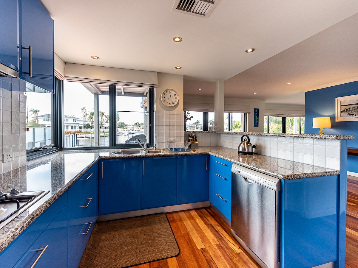 Watch pods of dolphins and boats sail by as you sit on the deck of this splendid waterfront townhouse. With panoramic views of the canals, spacious living area, 3 bedrooms 3 bathrooms and a fully equipped kitchen. You have also have two secure parking bays and your own 6 meter private jetty to park the boat. This is the perfect place to kayak, crab and fish. Only minutes to the town and iconic foreshore, cafes, playgrounds for the kids (even a skatepark nearby) and shopping precinct.