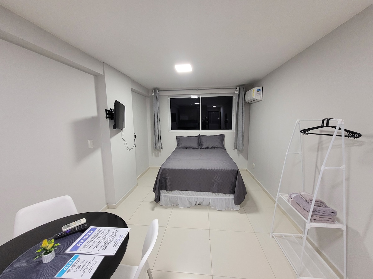✨ Ձեր բացառիկ տարածքը Ժուան Պեսոայում: ✨ Այստեղ ոչինչ չի տրամադրվում, ամեն ինչ միայն ձերն է: Գտնվելու վայրը ՝ - 5 րոպե UFPB - ից (Կենտրոնական գրադարան) - 5 րոպե UNIPE - ից - Կաբո Բրանկո լողափից 10 րոպե հեռավորության վրա (մեքենայով) Հարմարավետություն ՝ - Երկտեղանի մահճակալ 🛏️ - Wi - Fi - ի արագություն 📶 - Սմարթ հեռուստացույց 📺 - Օդորակում ❄️ Առանձին խոհանոց ՝ - Մինիբար, միկրոալիքային վառարան, եփուկ 🍳 - Սեղանն ու պարագաներն ամբողջական են 📝 Լրացուցիչ գումարներ ՝ - Սեկադոր 💁♀️ - Արդուկ 👔 - Էնքսովալ 🛁 Գործնականություն, հարմարավետություն և գաղտնիություն մեկ տեղում: