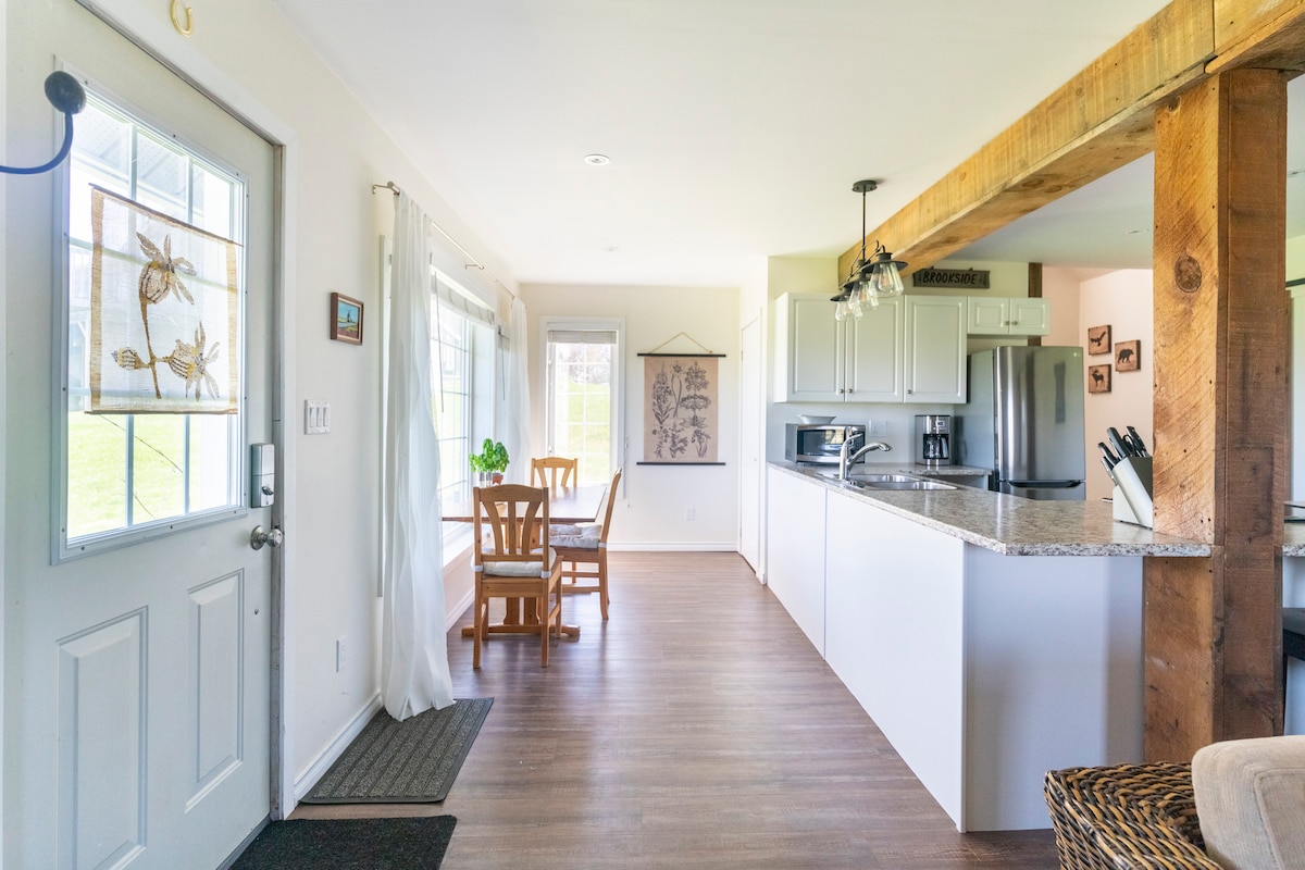 Welcome to Fairview Hills Farm. Relax on the spacious covered porch of The Squire’s Cottage watching horses grazing on the hillside. A short walk to the back of the property features natural wetlands with an abundance of different bird species. The Bruce Trail is close by with parking. Don’t feel like cooking? An assortment of restaurants, high end to take out, are close by or cook up a storm in the fully equipped kitchen. In the evening cozy up with a good book in front of the fireplace.