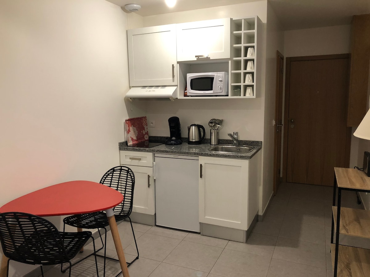 Հարգելի հյուրեր: Գտնվում է Մանթեսի կենտրոնում գտնվող հմայիչ փոքրիկ կոնդոմինիումում ։ Եկեք և բացահայտեք այս շքեղ վերանորոգված F2 - ը: Հարմարավետություն ՝ լվացքի մեքենա/ չորանոց, հեռուստացույց, WI - FI, սուրճի մեքենա, ուղղաձիգ շոգենավ... Քնելու հարմարություններ. ննջասենյակում ՝ 160 սմ մահճակալ, իսկ հյուրասենյակում ՝ 140 սմ ներքնակով թախտ ։ Տրամադրվում է սպիտակեղենի հավաքածու ։ Անվճար մասնավոր կայանատեղի մոտակայքում (50 Մ) Հացաբուլկեղենի խանութ և խանութներ ոտքերի վրա Մանթեսի երկաթուղային կայարան ՝ 5 րոպե հեռավորության վրա