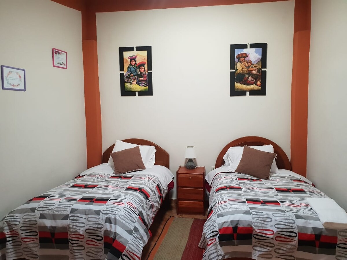 Nuestra vivienda se ubica en la Urbanización San Isidro, un barrio bastante tranquilo, cerca al centro arqueológico y a un corto paseo de la plaza y la estación del tren, los huéspedes podran diafrutar de la tranquilidad de la zona asi como de las hermosas vistas a las montañas.
