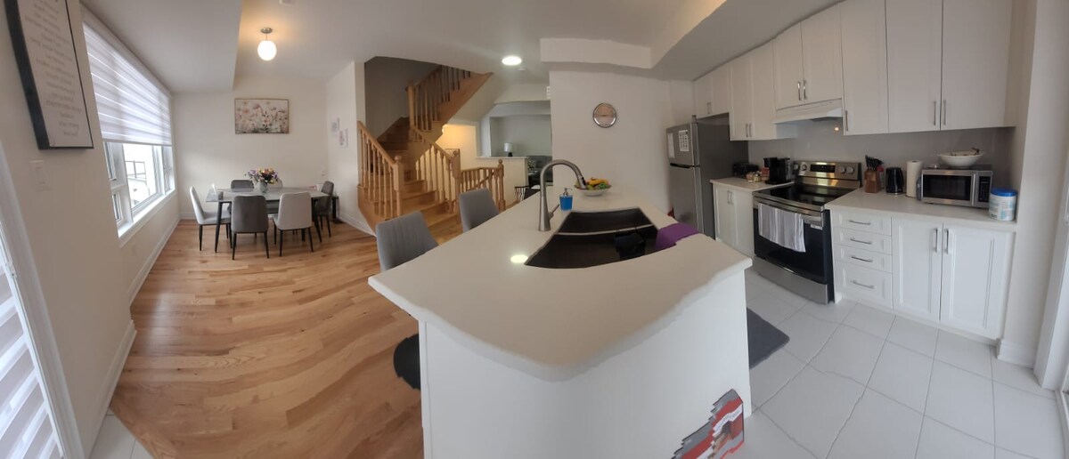 Ընդարձակ ժամանակակից 2 ննջասենյակով օրինական նկուղային առանձնաբաժին, ունի գեղեցիկ խոհանոց և 2 լվացքասենյակ ՝ Կանադայի Հրաշքների աշխարհին, Վոն Միլզին և մայրուղիներին մոտ, ոտքով հեռավորության վրա մինչև Go Station, City Hall, Park և Community Centre (լողավազանով, մարզասրահով, բոուլինգի ծառուղով, սքվոշով և թենիսի կորտերով), օդանավակայանից ընդամենը կես ժամ հեռավորության վրա: Այն արձակուրդի կամ գործնական ուղևորության ընթացքում մնալու լավագույն վայրերից է ։ Ամրագրեք հիմա, հանգստացեք և վայելեք ձեր ընտանիքի հետ այս նորաոճ հյուրերի տանը: