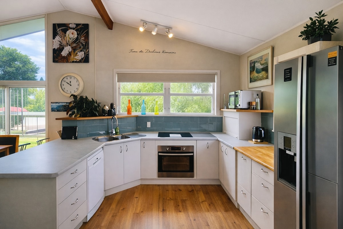 🛏️ Քնեք ընդհանուր հարմարավետությամբ Մենք գիտենք, թե որքան կարևոր է լավ քունը ։ Ահա թե ինչու ենք առաջարկում երկու շքեղ Super King մահճակալ և մեկ հարմարավետ Queen մահճակալ ՝ կատարյալ տարածք և հարմարավետություն փնտրող ընտանիքների կամ խմբերի համար ։ 🌿 Խաղաղ, բայց կենտրոնական Մեր տունն առաջարկում է հանգստություն ՝ առանց հարմարավետության զոհաբերության ։ Դուք ընդամենը մի կարճ զբոսանք եք Մոթուեկայի կենտրոնից, որտեղ խանութները, սրճարանները և տեղական հմայքը հասանելի են: