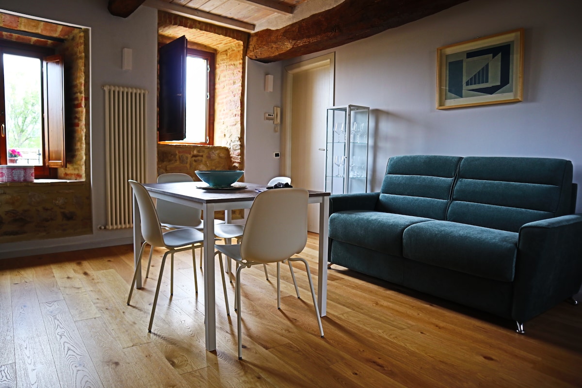 Questo elegante alloggio è perfetto per viaggi di gruppo. Potrete vivere l'esperienza di soggiornare in un tipico casale marchigiano completamente ristrutturato con finiture di altissimo livello dove i materiali originali sono stati armoniosamente abbinati alle soluzioni più moderne con un risultato assolutamente unico. La privacy e il silenzio dominano l'ambiente circostante valorizzato dalla vista che si può godere con il monte San Vicino sullo sfondo.