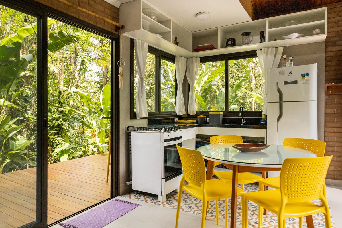 Fuja da rotina e relaxe em um chalé privativo cercado pela natureza, perfeito para casais 💑. Desfrute de uma jacuzzi aquecida exclusiva, cama king-size, ar-condicionado e churrasqueira, tudo a apenas 500m da praia. Localização incrível no sul de Ilhabela: perto das praias mais bonitas, restaurantes e mercado, mas com a tranquilidade de um refúgio na mata 🌿🌊 O chalé possui: • 1 quarto • 2 banheiro • Cozinha privativa • Wi-Fi • Smart TV • Jacuzzi para relaxar. • Churrasqueira privativa
