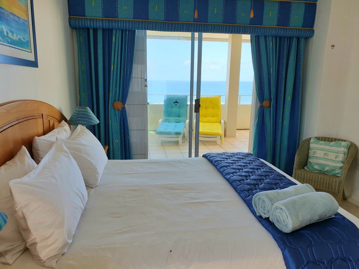 This spacious Penthouse with incredible 180 degrees sea views from its spacious covered patio is perfect for sipping sundowners and preparing meals on the gas braai. The apartment is only a short 5 minute walk to the very popular blue flag Lucien beach as well as convenient shops and restaurants. The unit comes with a fully fitted kitchen, 2 bathrooms and 3 bedrooms. The large outdoor entertainment patio is furnished with loungers and a family dining area. All 3 bedrooms are air-conditioned.