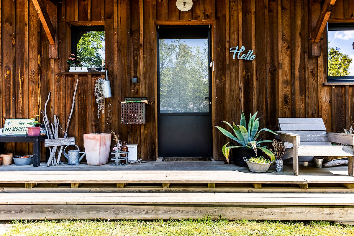 Cabane bâtie essentiellement avec des matériaux de récupération sur le petit îlot de notre étang. Aménagement confortable pour séjours courts ou longs. Lieu idéal pour se ressourcer, travailler sur un projet, jouer à des jeux de société, pêcher ou se balader dans la nature (parc, forêt, vignoble). Petit déjeuner et massages possibles. Accès privatisé à notre espace bien-être (piscine couverte + jacuzzi) en option de mai à octobre. Voir détails plus bas. 👇