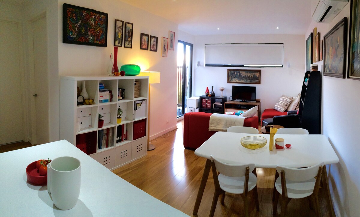 Bespoke and Beautiful 1 bedroom apartment in a converted warehouse. Walking distance to public transport to the city and Flemington racecourse. 2 train stations from city loop. With restaurants, cafes, breweries, distilleries, bakeries and coffee roasters all in close proximity. The apartment with cork floors, concrete walls and bespoke bathroom has a really cosy feel. We love our apartment and we know you will too.