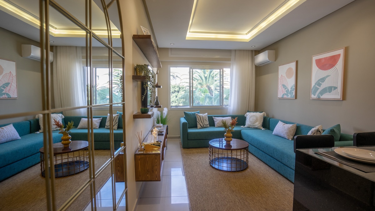 🏡 Բացահայտեք ոճի, հարմարավետության և հարմարավետության կատարյալ խառնուրդը Կասաբլանկայի հեղինակավոր Անֆա թաղամասում գտնվող այս գեղեցիկ ձևավորված բնակարանում՝ մարզադաշտից ընդամենը մի քանի քայլ հեռավորության վրա։ Անկախ այն բանից ՝ այցելում եք հանգստի, բիզնեսի կամ հեռավար աշխատանքի համար, այս տարածքը մտածված կերպով կահավորված է ձեր բոլոր կարիքները բավարարելու համար ։ Վայելեք գերարագ Wi - Fi, լիովին կահավորված բնակելի տարածք և խելացի ինքնուրույն ժամանում ՝ լիակատար անկախության համար ։