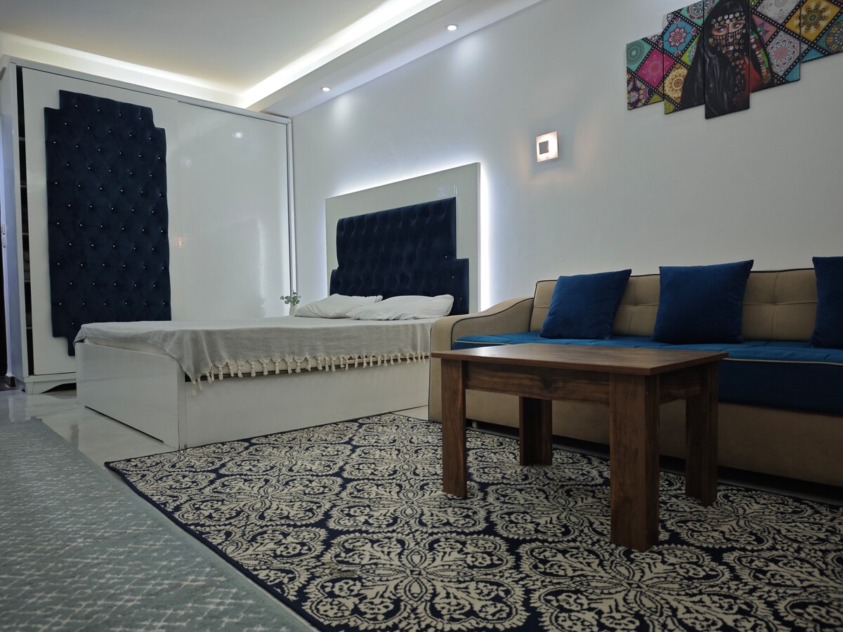 Այս ստուդիայում ջերմությունն ու անկաշկանդ մթնոլորտը երաշխավորում են նվազեցնել ձեր սթրեսն ու անհանգստությունը: Հանգստացեք օրվա վերջում ։ Դիմավորեք լույսերը, երաժշտություն լսեք, վերադարձեք սավանները և քնելու ժամանակը յուրահատուկ դարձրեք ։ Ժամանակակից կահավորված ստուդիո բնակարան ՝ 5 - րդ հարկում գտնվող լողավազանի տեսարանով: Al - Dau Heights - ը հիանալի բնակելի համալիր է, որը շատ մոտ է տուրիստական զբոսավայրին: