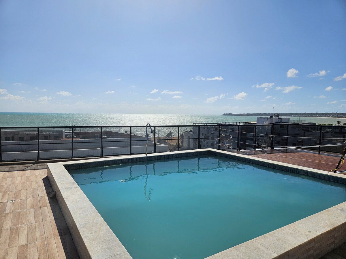 Դուք կմնաք Ժուան Պեսոայի լավագույն կահավորված բնակարանում ՝ տանիքում անեզր լողավազանով և օվկիանոսի տեսարաններով, կինոսենյակում, մանկական տարածքում, խաղասենյակում և գրասենյակային տարածքում: Բնակարանում կա ձեր այցի համար նախատեսված բոլոր ենթակառուցվածքները ՝ ինդուկցիոն սալօջախ, միկրոալիքային վառարան, Nespresso սրճեփ, մինիբար, խոհանոցային բոլոր պարագաները, պահարանները, հարմարավետ մահճակալը, SmartTv - ն և Wi - Fi - ը ։ Այս ամենը Տամբաուի հայտնի լողափից ընդամենը մի թաղամաս է ։