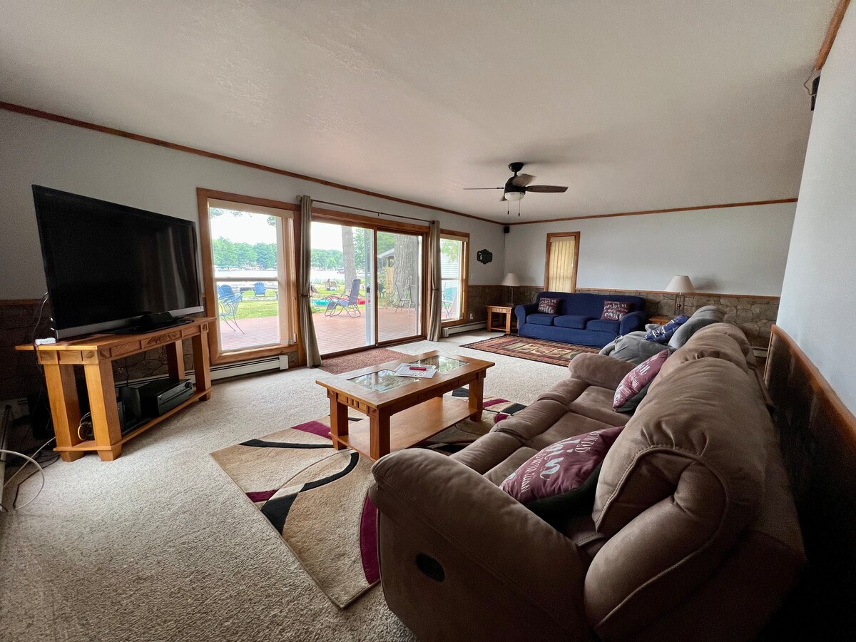 New “barndominium”. Open space floor with large covered porch. Heated floor. Nothing fancy but an entire home to stay instead of limited space hotel. Guests can access the lake through the host property (yellow house) across the road in front of the lake and use the dock. 2 minutes to boat launch. Dollar General, Swiss Inn Restaurant, Post Office - 0.6 miles Laundromat - 1 miles (3 minutes) Snow Snake Ski Resort - 8.9 miles Rocks & Valley Off-Road Park - 7.9 miles