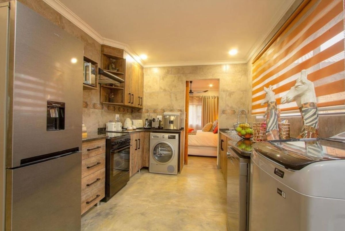 Ժամանակակից գեղեցիկ տուն, որը գտնվում է Կրյուգերի ազգային պարկին կից ։ Հիանալի հարմար է ընտանեկան հավաքույթի համար ։ Ոչ գիշատիչ կենդանիները ազատ շրջում են, և մեծ 5 - ը հաճախ կարելի է տեսնել գետի երկայնքով ձգվող խնջույքի վայրերից ։ Կրյուգերի ազգային պարկը ընդամենը 15 րոպե հեռավորության վրա է ։ Տանը կա ամեն ինչ ձեր այցը հնարավորինս հարմարավետ դարձնելու համար ։ Խոհանոցն ամբողջությամբ ապահովված է բոլոր մոդոններով: Ամբողջական dstv հասանելի է, մի խուրձ լողավազան, եւ braai (խորոված) այդ երկար ամառային օրերի եւ գիշեր.