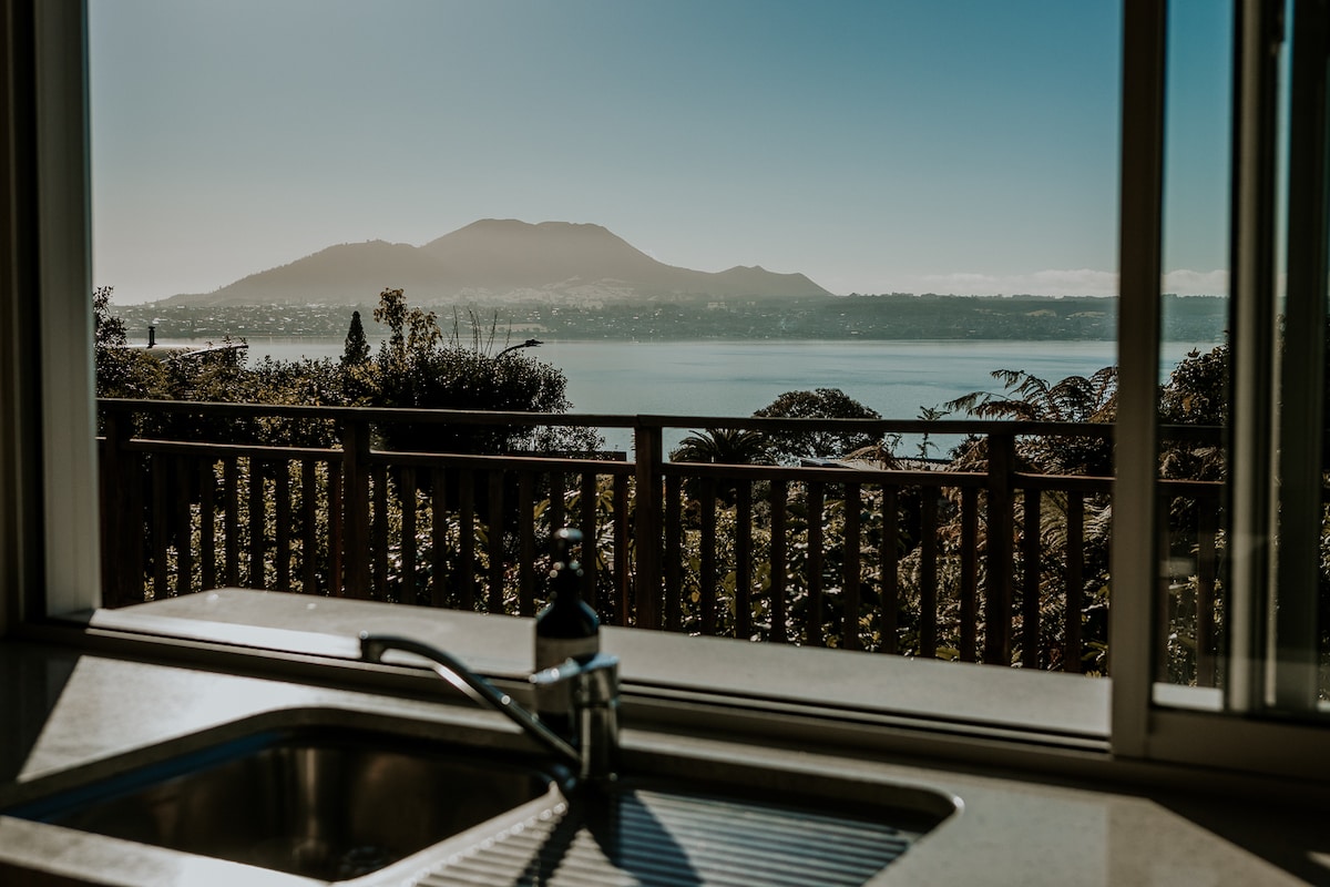 Մեր ժամանակակից տունը Տաուպոյից 15 րոպե հեռավորության վրա է, բայց այն կարծես մեկուսի հանգստի վայր լինի։ Այն հանգիստ ու մեկուսի է, նայում է դեպի Տաուպո լիճը և Ռուապեհու լեռը՝ ցնցող մայրամուտներով։ Տունը տարվա բոլոր եղանակներին հարմար է, ունի բացօթյա տարածքներ՝ խորովածի համար նախատեսված, մեծ պատուհաններ և երկկողմանի բուխարի։ Վակաիպո ծովածոցը լողալու կամ զբոսնելու համար 5 րոպե հեռավորության վրա է, մոտակայքում կան բազմաթիվ արահետներ։ Հարմար չէ երեխաների համար ։ Վարսահարդարիչ, հիգիենայի պարագաներ և արդուկ տրամադրված չեն (կներեք, հյուրերը դրանք միշտ վերցնում են, և դժվար է անընդհատ փոխարինել)։