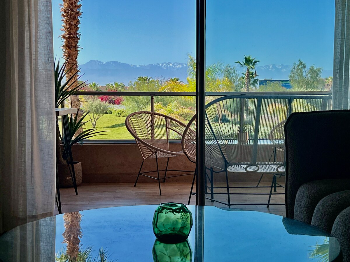 Niché au cœur du prestigieux domaine touristique Marrakech Golf City, découvrez ce luxueux appartement offrant une vue exceptionnelle sur le golf, la piscine et sur les majestueuses montagnes de l'Atlas. L'appartement a été décoré avec amour avec un style moderne, bohème et beldi-chic. Il est entièrement équipé et offre des prestations haut de gamme La résidence est orientée vers les montagnes de l'atlas, elle est très prisé de part son cadre calme et sécurisé et de sa proximité du centre ville