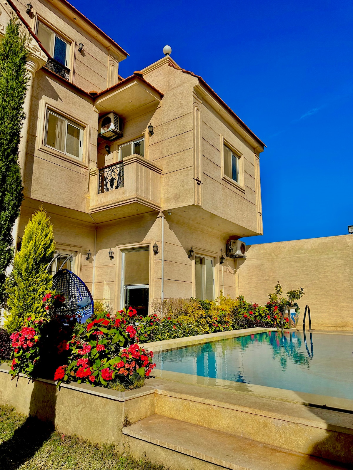 Անձնական տարածք, որը հարմար է ընտանիքների և հիջաբով կանանց համար, որոնք ձգտում են ԱՆԿԱԹԱՅԱՑԱՆԱԼ գաղտնիություն։ Ունի երկու մեծ լողավազան։ Առաջինը 2,5 մ խորություն ունի, մյուսը հարմար է և անվտանգ է երեխաների համար։ Խոշոր ընդարձակ պարտեզ՝ բարձր ծանր ծառերով, որոնք լիովին ապահովում են լողավազանների և պարտեզի առանձնությունը։ Փակ կայանատեղին ապահովում է իմ հյուրերի մեքենաների անվտանգությունը և պաշտպանում է արևից։ Մաքրության հիանալի ստանդարտ՝ տարածքի ներսում և դրսում։ Լողավազանները և պարտեզը պարբերաբար սպասարկվում են հյուրերի այցի ընթացքում։