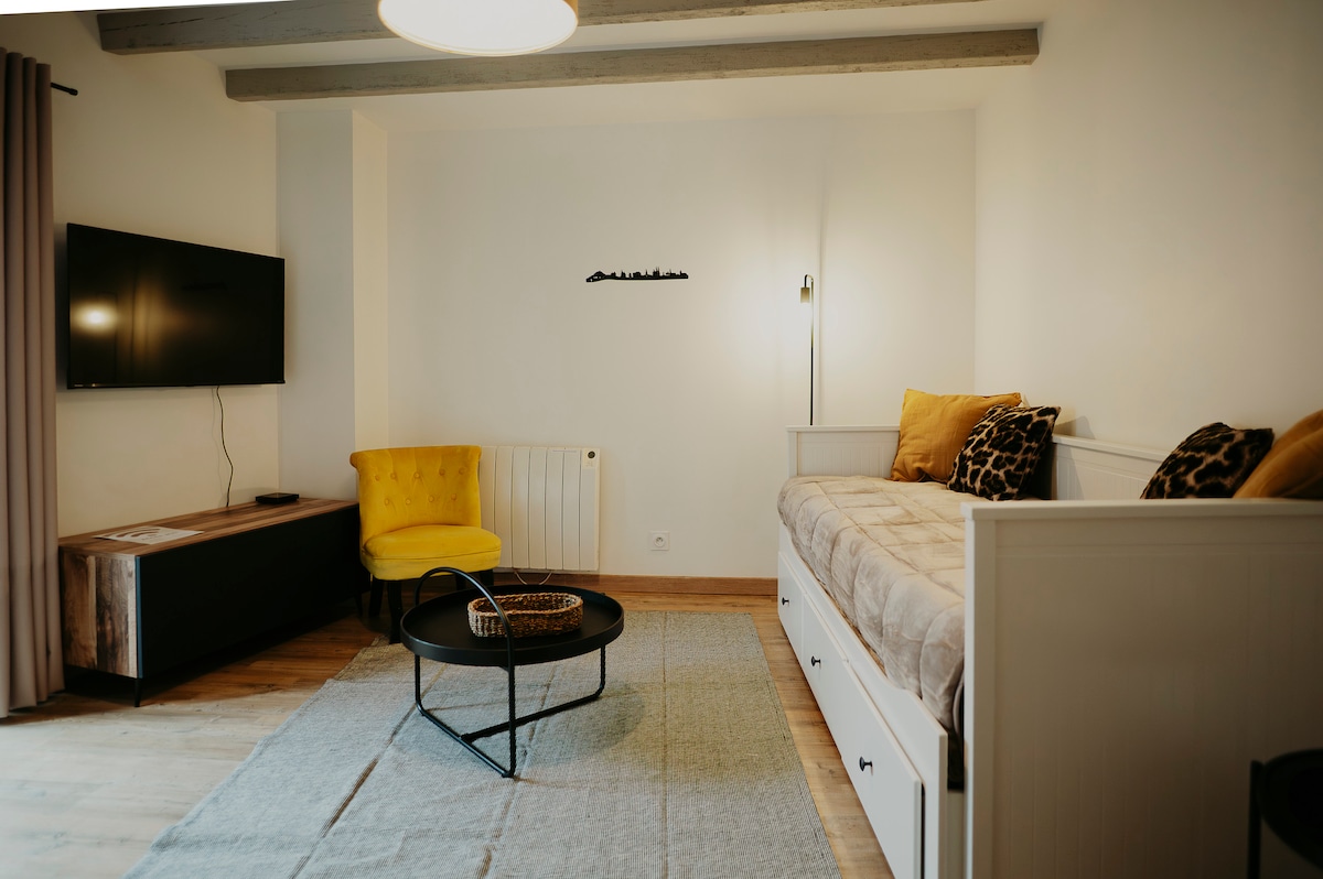 50 քմ մակերեսով պրեմիում օդորակիչով բնակարան, որը կահավորված է ՍՊԱ կենտրոնով /Balnéo/ Video Projector Motorized էկրանով 3 մ x 2 մ: լիովին սեփականաշնորհված է ԱՌԱՎԵԼԱԳՈՒՅՆԸ 2 հոգու համար, որտեղ կգտնեք այն ամենը, ինչ անհրաժեշտ է առօրյա կյանքը մոռանալու և փախչելու համար: Լրացուցիչ մահճակալ կամ երկու լրացուցիչ մահճակալ ավելացնելու հնարավորություն ՝ թույլատրեք 72 ժամ առաջ (լրացուցիչ վճար)