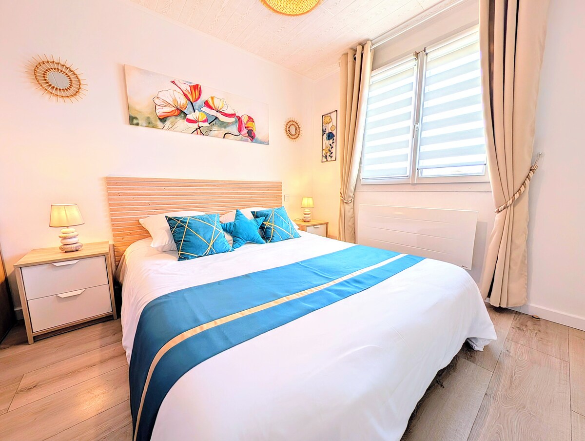 Այս վերանորոգված բնակարանը (1-ին հարկ) օդորակիչով ձեզ կառաջարկի հիանալի հանգիստ, որը կարող է տեղավորել 6 հոգի։ Տրամադրվում են սավաններ, սրբիչներ։ Մանուկների անվճար փաթեթ՝ մահճակալ, մանկասայլակ, բարձր աթոռ… Փակ և անվտանգ բնակարան, մասնավոր հեծանիվների սենյակ։ Անձնական կայանատեղ ձեր մեքենայի համար։ 4 լողափ 5 րոպեանոց քայլելու հեռավորության վրա (Le Môle, La Dalle, La Conque և La Plagette)՝ գեղեցիկ ժայռոտ տարածքում։ Դուք նավահանգստից 100 մ հեռավորության վրա եք, իսկ բուլոդրոմից (ծովածոց)՝ 7 րոպե։