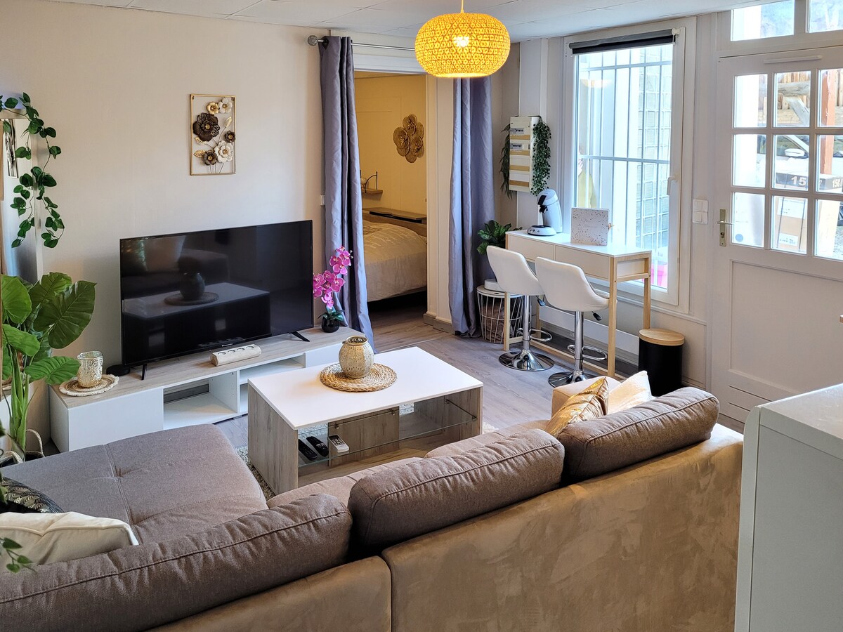 En plein cœur du centre ville avec ses commerces et à moins de 100m de l'office de tourisme. Logement en fond de cour dans une résidence privée et sécurisée par badge avec son entrée indépendante, sa terrasse et sa place de parking privée. Pour une nuit ou un long séjour, vous disposez d'une chambre avec lit 160×200 ( linge de lit fourni),WC séparé, salle de douche avec serviettes de bain et lave linge, cuisine équipée avec plaque induction, four, micro ondes, frigo et congélateur.