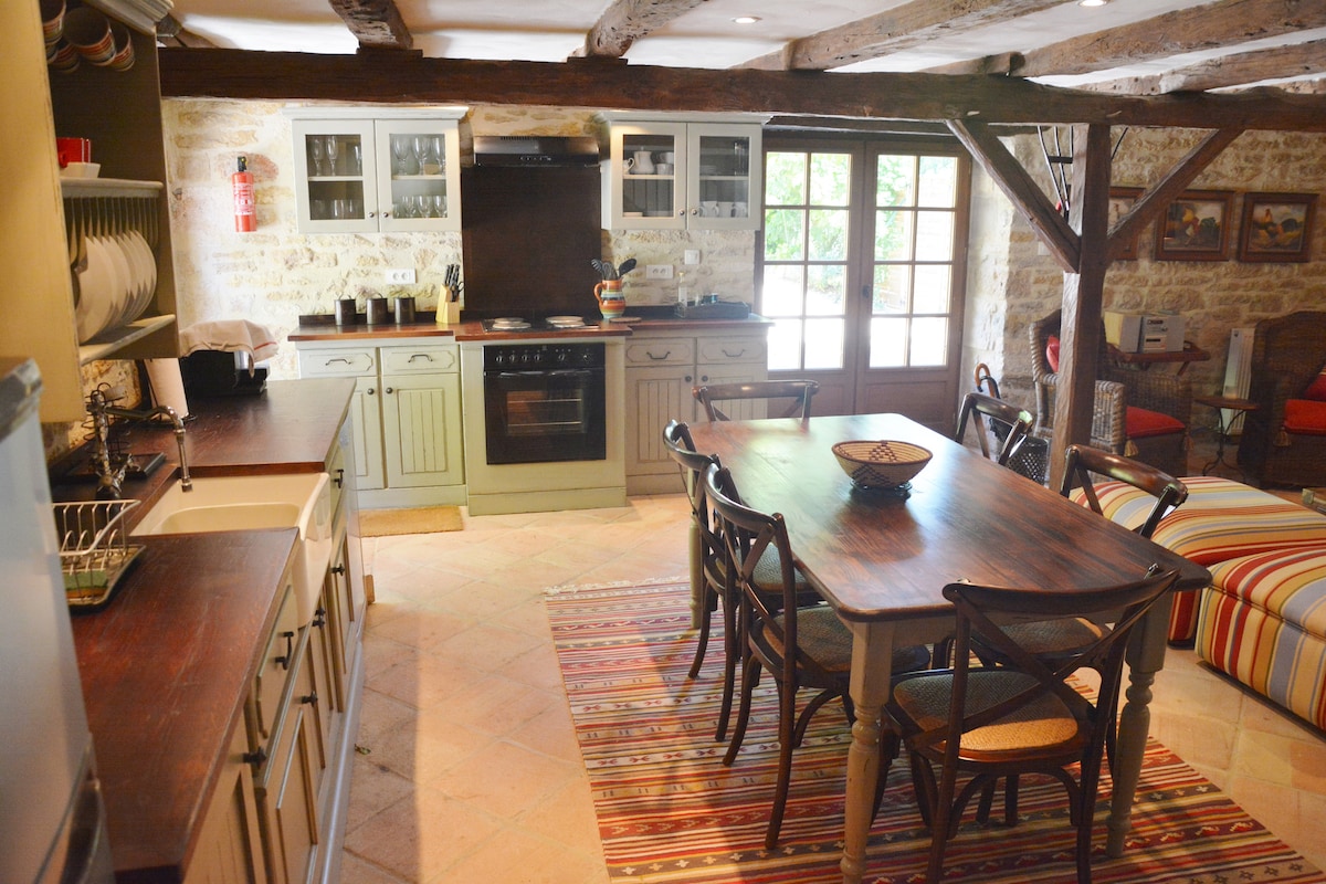 A proximité du Centre de Martel (10 mn à pied), village remarquable d'Occitanie, proche Sarlat, Collonges-la-Rouge, Rocamadour et Gouffre de Padirac. Je vous conseillerai sur les autres possibilités touristiques alentour. Le logement occupe le premier étage d'une jolie dépendance en pierre, il est lumineux, entièrement rénové et équipé pour 4 personnes. Petit balcon avec vue sur Martel. Le jardin est clôturé et vous pourrez y déjeuner en utilisant le barbecue ou la plancha.